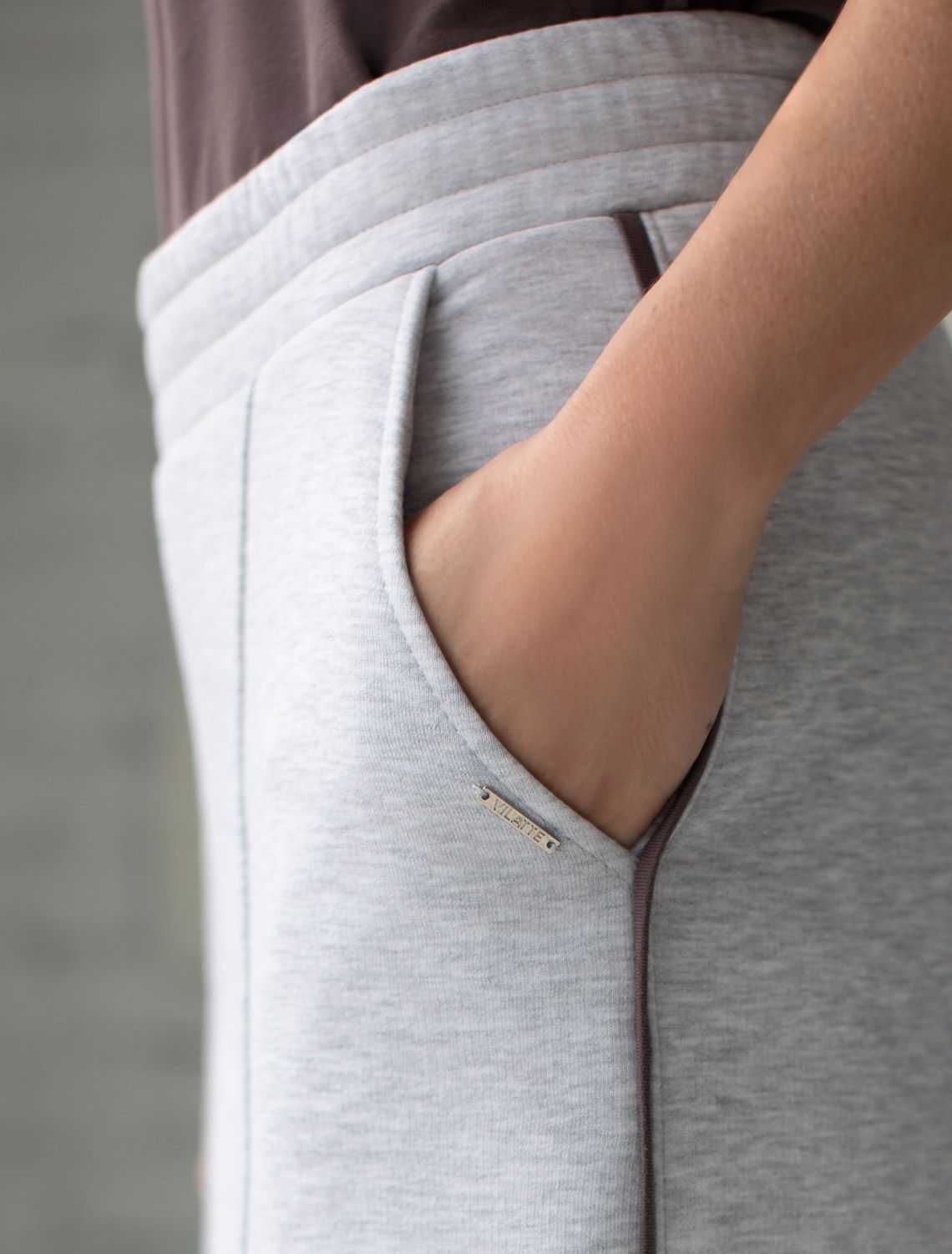 Теплые прямые брюки серого цвета с эффектом меланж из эластичного футера трехнитки с начесом созданы для максимального комфорта в холодную погоду. Мягкий материал приятный к телу, хорошо держит форму, не вытягивается и не теряет форму даже при активной носке. Благодаря дышащим свойствам премиального футера, брюки подходят на любую погоду, обеспечивая оптимальный микроклимат и уют. Свободный крой и эластичный широкий пояс делает посадку удобной для разных типов фигуры и размеров, включая большие и маленькие. Застроченные стрелки визуально вытягиват силуэт и подчеркивают эстетичнось повседневных брюк, а контрастные тонкие лампасы добавляют актуальности образу. Благодаря особенностям трехниточного плетения и внутреннему слою с начесом, эти брюки отлично сохраняют тепло в холодные осенние и зимние дни, при этом в них вы будете выглядеть модно и современно. Вы можете составить комплект с артикулами: D49.143 и D49.142