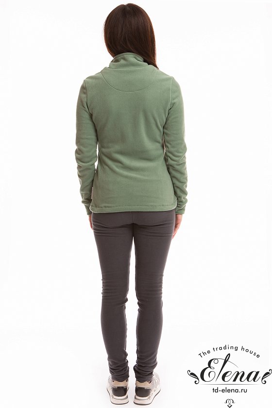 Толстовка из флиса с воротником-стойкой, втачными рукавами и короткой застежкой на молнию. Спереди и на спинке декоративная отстрочка по швам соединения деталей изделия.