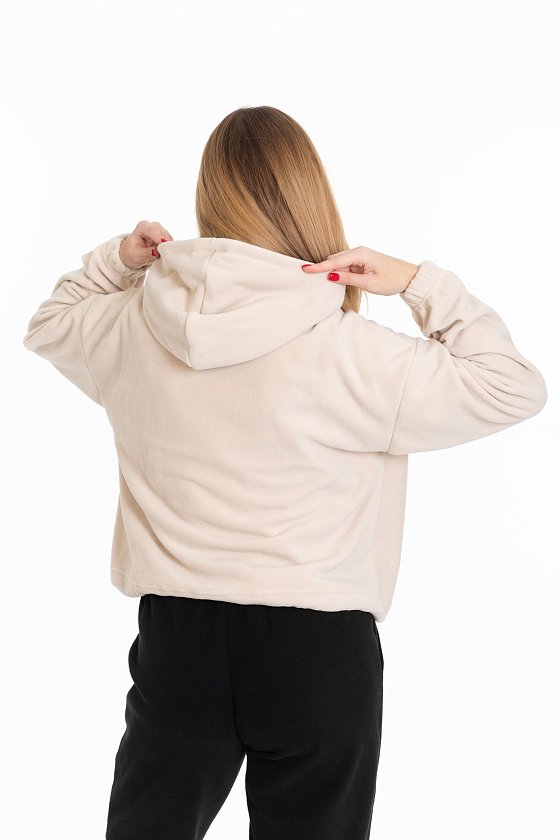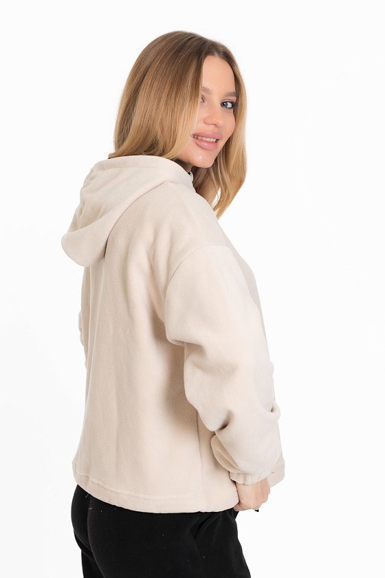 Женская толстовка из мягкого и тёплого однотонного флиса цвета экрю, который обеспечивает комфорт в прохладную погоду.