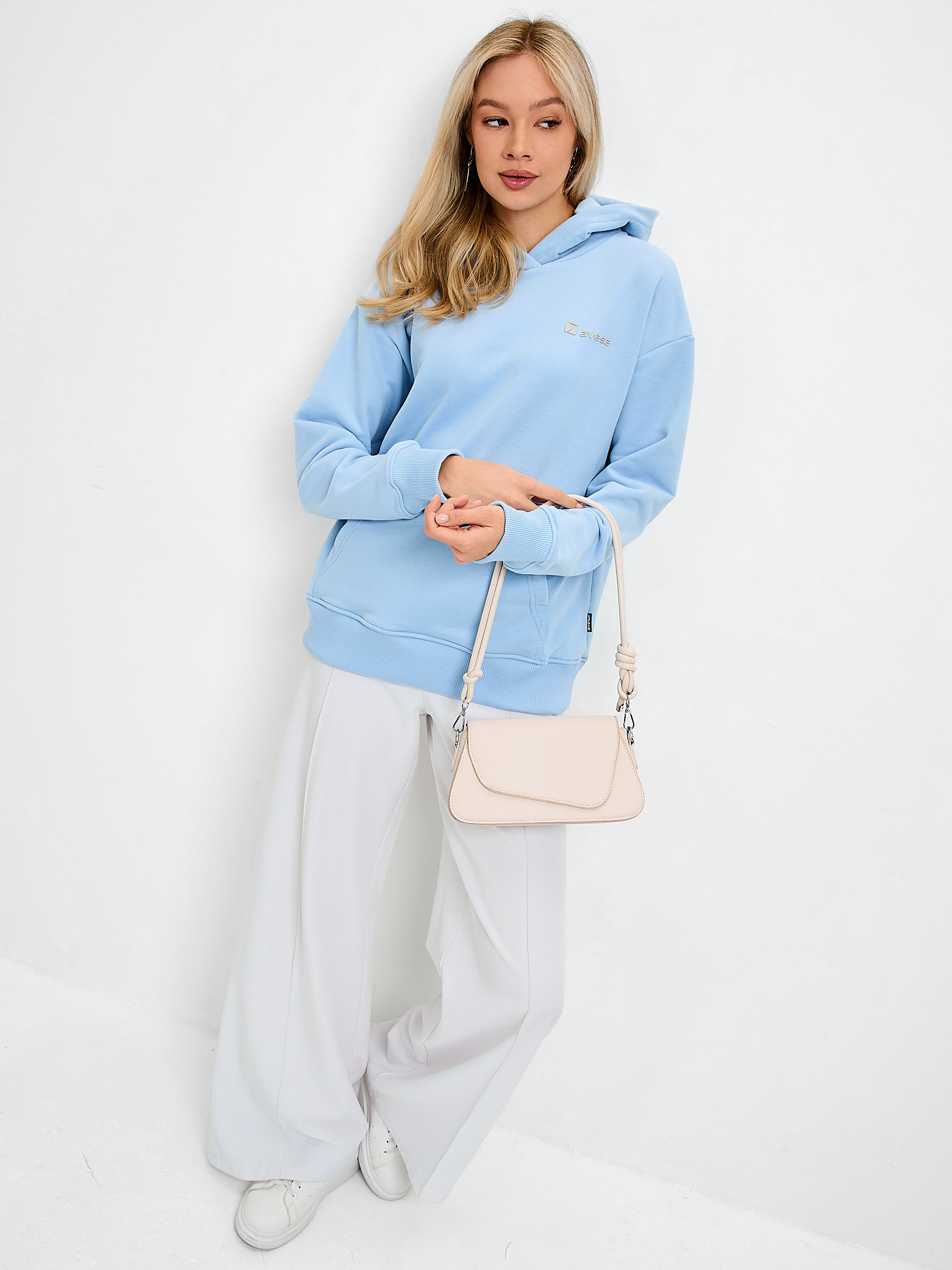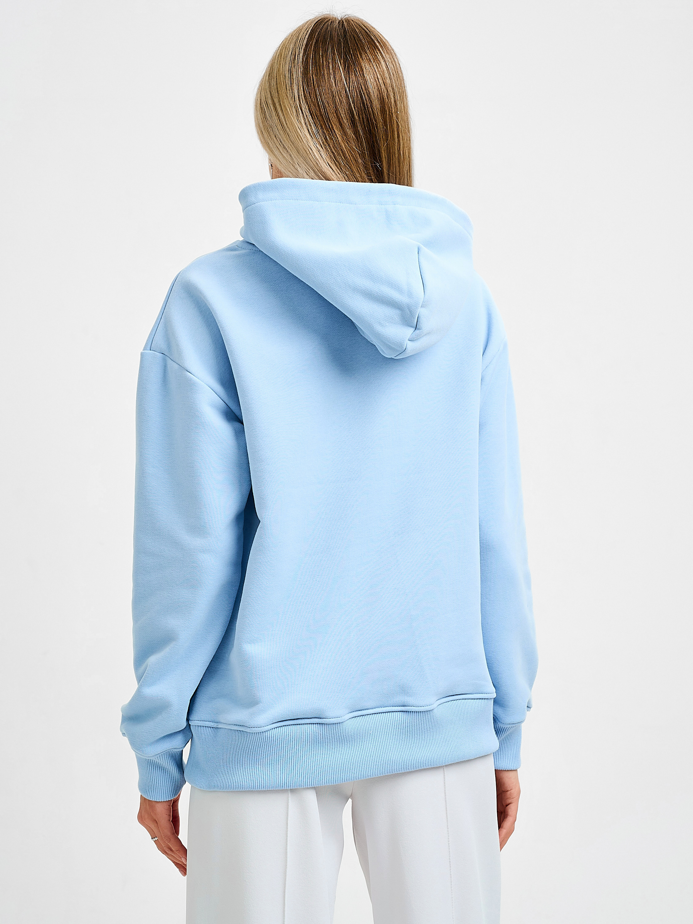 Женская толстовка из хлопкового футера с эффектом велюра. Толстовка с втачным капюшоном. На полочке накладной карман-кенгуру. Низ куртки и низ рукавов с поясом и манжетами из кашкорсе в цвет футера.