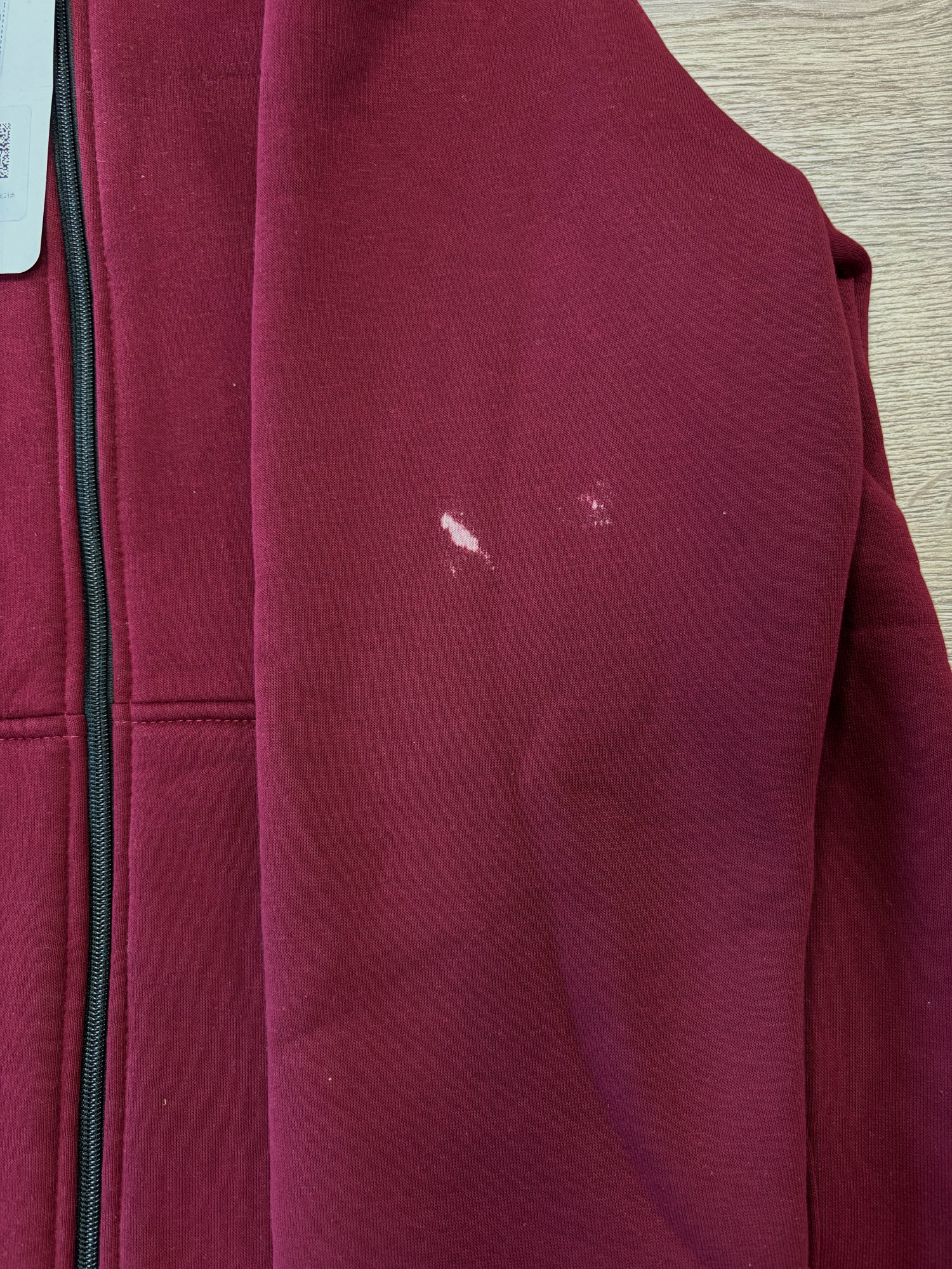 Описание: На рукаве белые пятна - обесцвечена ткань.