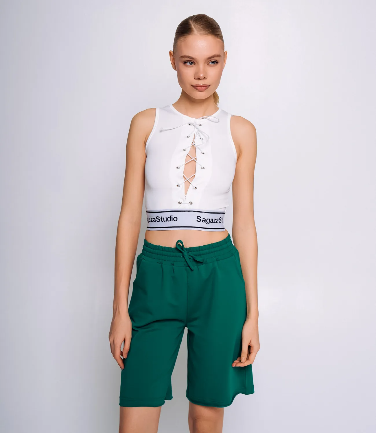 Топ - это одежда, которая выделяет женственность любой девушки. Данная модель топа с укороченным кроем и шнуровкой на груди подойдет для летнего сезона. Его выбирают покупательницы, которые ценят сочетание идеального качества и доступной цены. Фасон подчеркивает привлекательность фигуры. Производитель знает, как разработать эксклюзивные и стильные решения. Для изготовления использована ткань 65% полиэстра, 30% хлопка, 5% спандекса, которая характеризуется отменным качеством. Даже после многих стирок изделие не утратит первоначальной красоты. Вы обязательно будете его носить с большим удовольствием. Обратите внимание на эффектную шнуровку на груди. Она полностью соответствует фотографии на сайте. Чтобы вы были уверены в размере, мы представили на странице таблицу. Воспользовавшись ею, вы сможете сами сделать мерки и удостовериться. Предложенная нами цена является доступной. Не откажите себе в удовольствии быть элегантной! Параметры модели: рост 173, 89-58-89.
