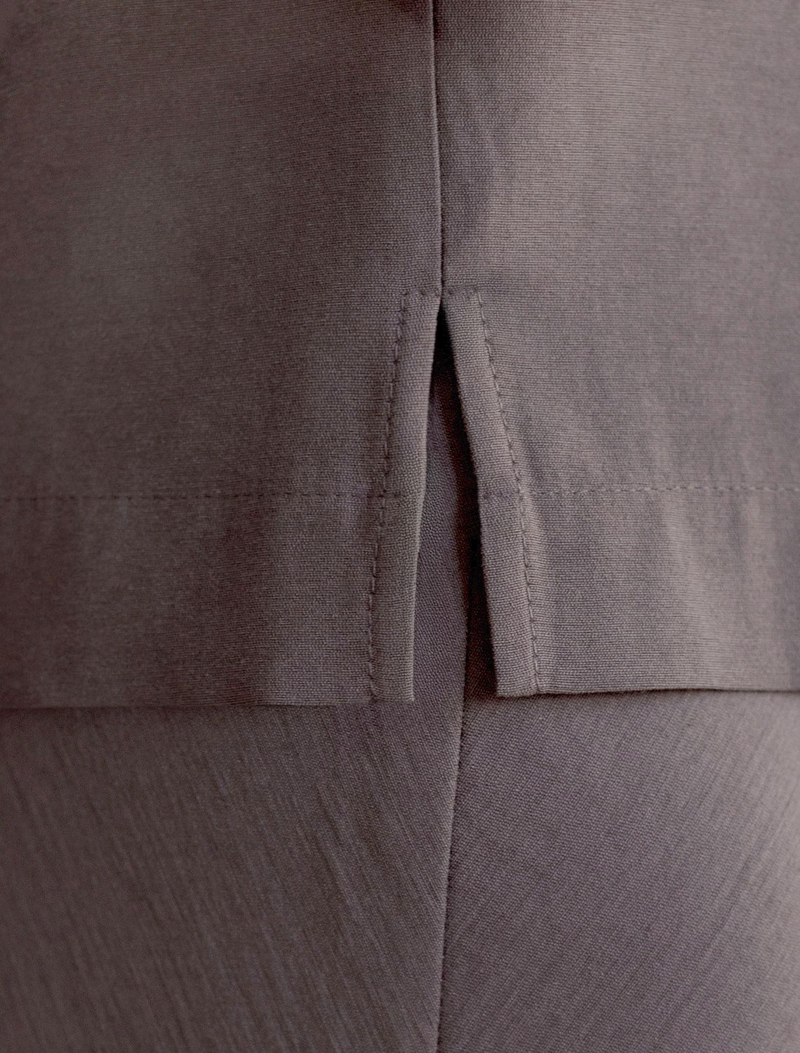 Изысканный топ кофейного цвета с элегантным вырезом-лодочкой, выполненный из плотного лиоцелла. Лиоцелл это более дорогой и экологичный вариант вискозы, очень прочный и шелковистый. Ткань отличается от регулярной коллекции из лиоцелла - она содержит еще больше лиоцелла (92%), благодаря чему имеет более нежную шелковистую фактуру. Вырез лодочка придает топу утонченность, а небольшие разрезы по бокам добавляют легкости. Простой прямой крой в сочетании с интересными деталями создает стильную и в то же время комфортную вещь. Топ средней длины подойдет для любительниц базовой одежды, которые хотят деликатно повысить градус своего стиля. Этот лаконичный топ будет идеальным выбором для теплого времени года или многослойных ансамблей.