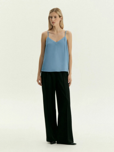 Топ с треугольным вырезом на тонких бретелях отлично подойдёт как база для любых повседневных образов. Бретели можно регулировать. Топ сделан в чёрном цвете из приятной к телу вискозы, на вискозной подкладке