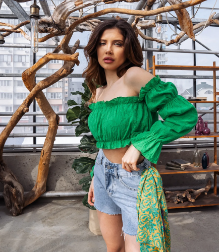 Топ – это важный элемент гардероба, который подчеркивает женственность каждой женщины. Данный женственный топ с оборками идеально подойдет для летнего сезона. Его выбирают посетительницы, которые ценят сочетание качества и цены. Фасон топа подчеркнет изящность фигуры. Производитель умеет создавать модные и стильные решения. Для пошива использована ткань с составом 65% полиэстера, 30% хлопка, 5% эластана, которая характеризуется отличным качеством. Даже после множества стирок топ сохранит свою первоначальную привлекательность. Вы будете его носить с удовольствием. Обратите внимание на цвет, который соответствует фотографии на сайте. Чтобы быть уверенной в размере, обратитесь к предоставленной на странице таблице. Установленная цена на топ является приемлемой. Не откажите себе в удовольствии быть элегантной и неповторимой в этом летнем сезоне!