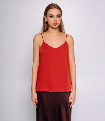 Нежный топ – отличный вариант для жаркой погоды. Он изготовлен из высококачественного материала, на ощупь напоминает шелк, поэтому дарит охлаждающий эффект и красиво струится. Топ на бретелях подойдет для создания повседневного, офисного и романтического образа. Его можно сочетать с юбкой, брюками, джинсами, шортами. Рост 168 см, 85-63-92.