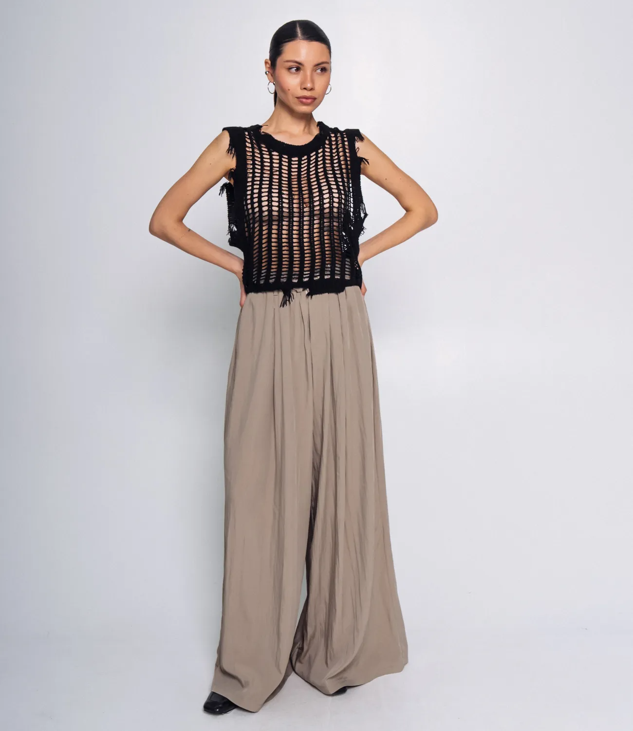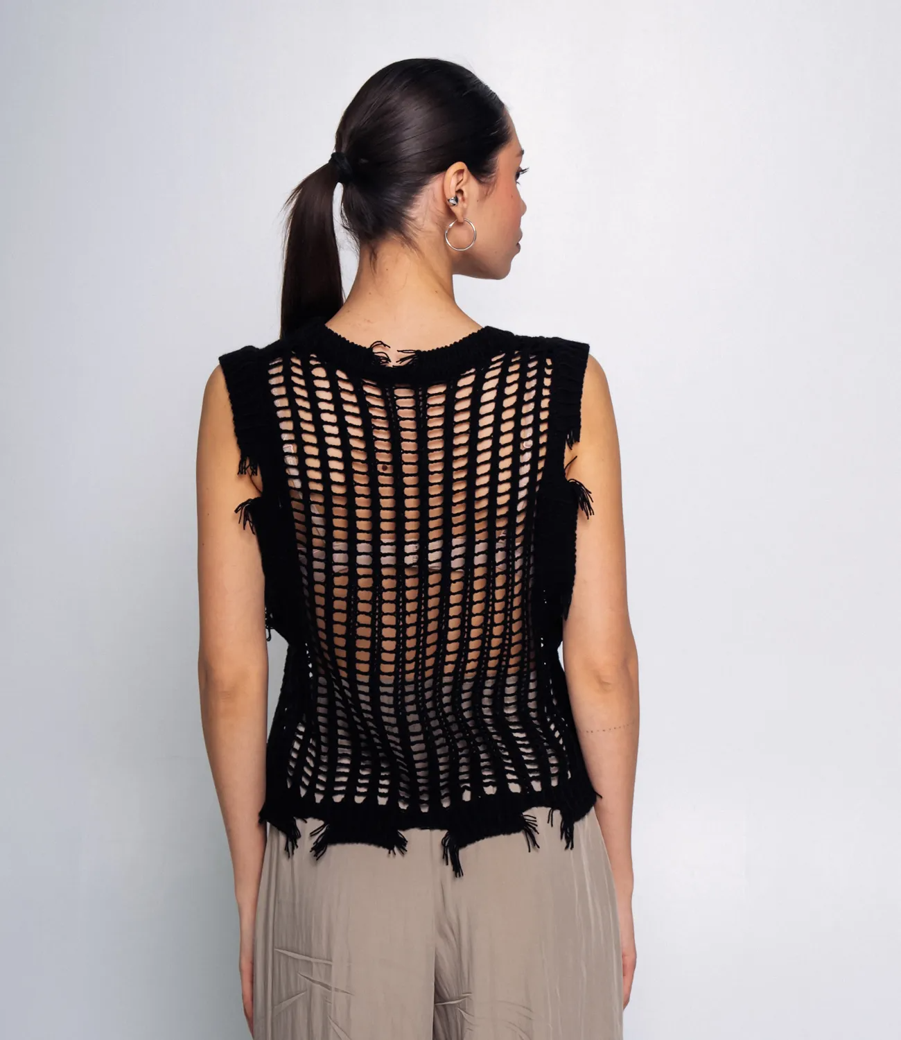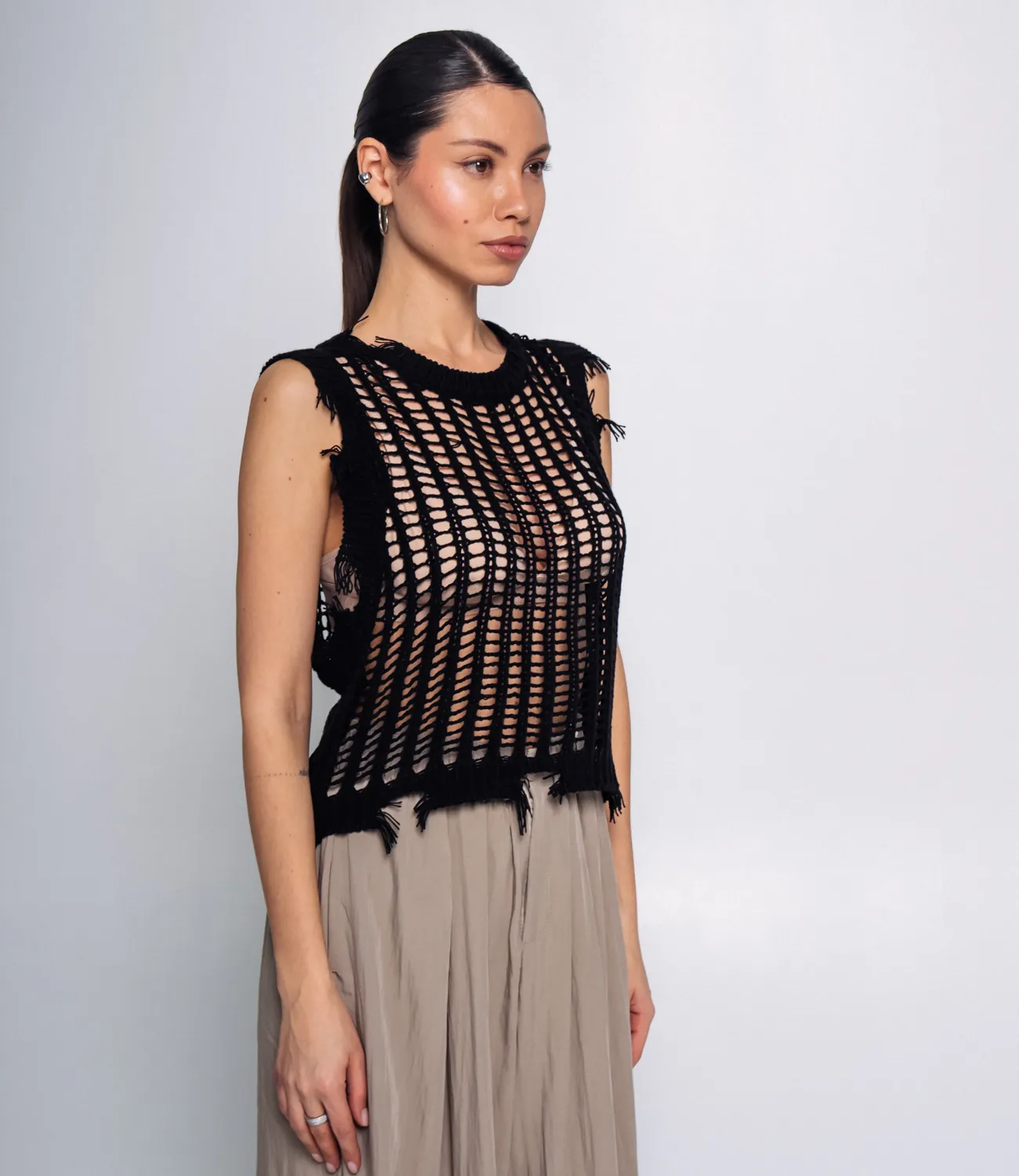 Топ-жилетка с крупной сеткой - это модный и элегантный элемент гардероба, который может служить как самостоятельным верхом или как дополнительный слой к другим нарядам. Топ-жилетка с крупной сеткой обеспечивает воздухопроницаемость и добавляет изысканности образу. Крупная сетка создает интересный текстурный эффект и позволяет выделяться из толпы. Этот стильный элемент гардероба позволяет экспериментировать с различными комбинациями одежды. Ее можно надеть на топ или платье, добавляя слой прозрачности и изящности. Он также может использоваться как дополнение к купальному костюму или быть частью фестивального наряда.