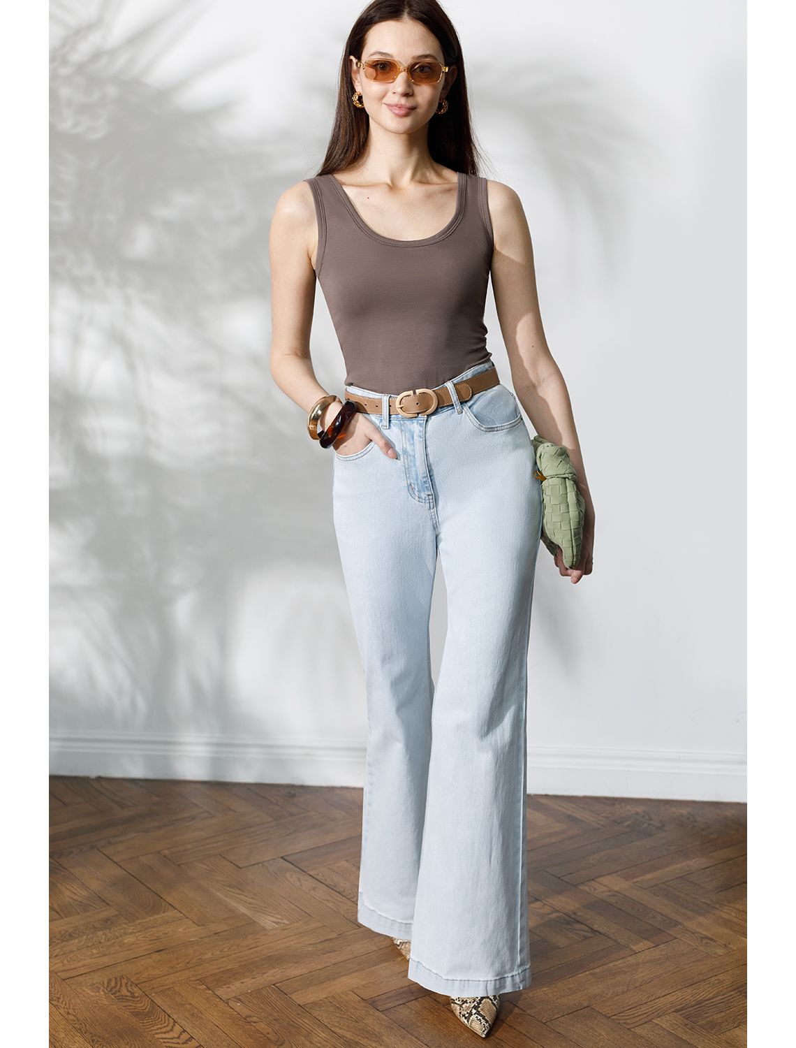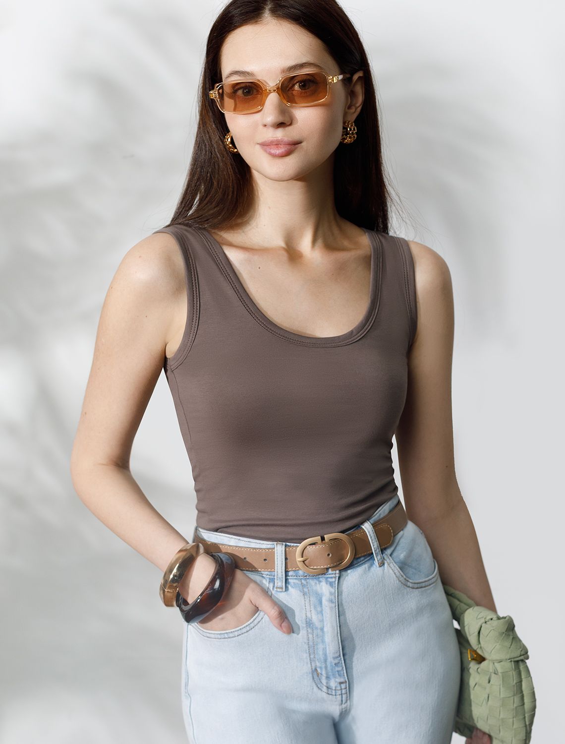 Стильный и женственный топ кофейного цвета из премиального хлопка плотностью 170 Г/м2 станет отличным дополнением вашего гардероба. Актуальный дизайн и однотонное исполнение позволяют легко комбинировать его как с деловым костюмом, так и с повседневными вещами. Облегающий силуэт идеально подчеркивает фигуру, не сковывая движений, обеспечивая комфорт на весь день. Дышащая ткань с добавлением эластана приятно прилегает к телу и прекрасно тянется, что делает изделие подходящим для девушек и женщин всех возрастов. Эта базовая майка подойдет на все сезоны, в том числе, как нижний слой. Майка подходит для больших, включая 56 размер, и маленьких размеров, а также смотрится изящно как на высокий рост, так и на низкий. Благодаря своей универсальности топ будет уместен на работе, деловых встречах или в повседневном образе. Он станет гармоничным дополнением, сохраняя элегантность даже в офисной обстановке. Незаменим в поездки, в путешествия, на отдых.