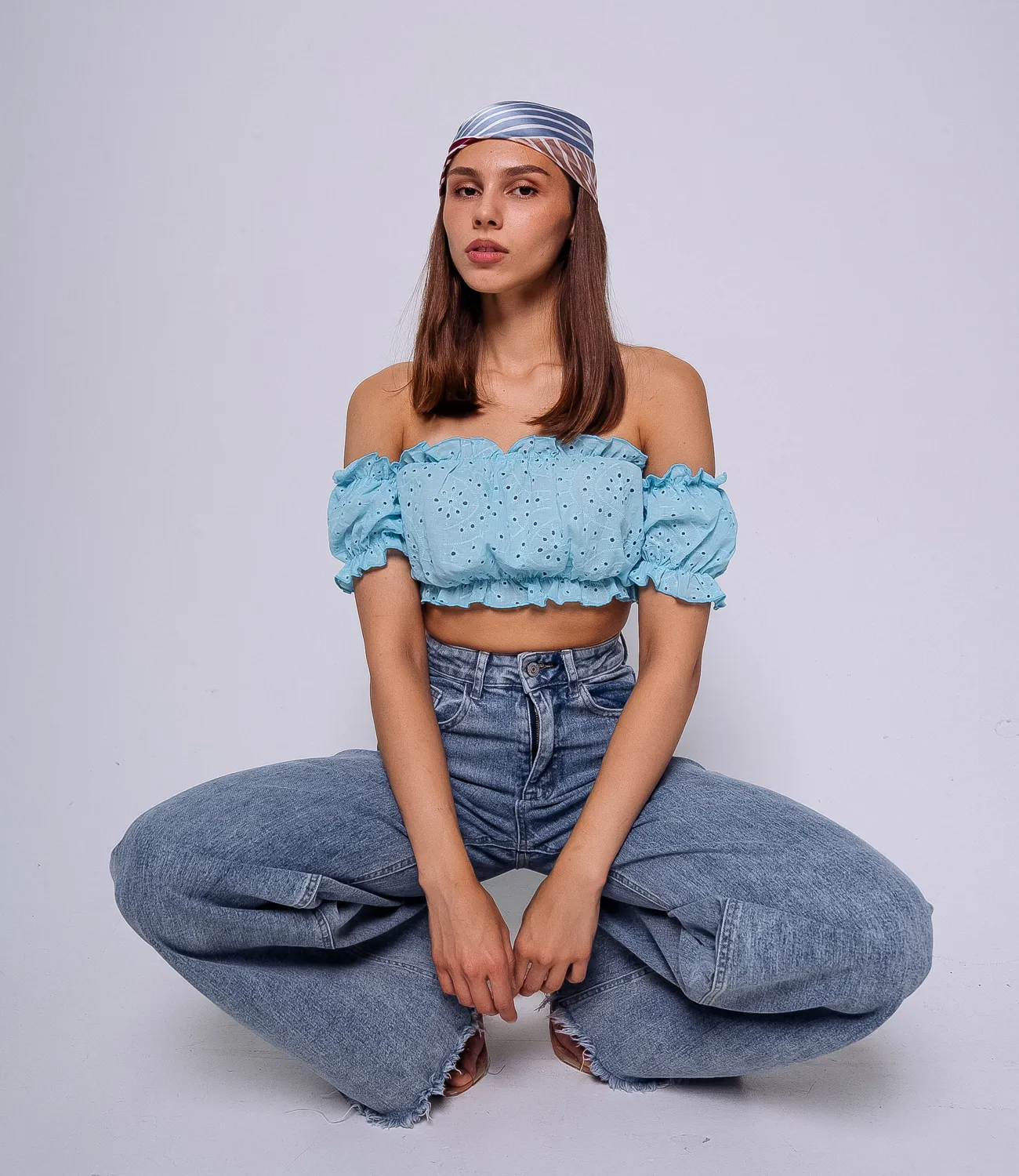 Нежный топ из 100% хлопка – отличный вариант для жаркой погоды. Топ подойдет для создания повседневного и романтического образа. Его можно сочетать с юбкой, брюками, джинсами, шортами. Хлопок