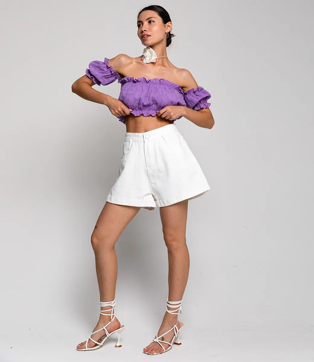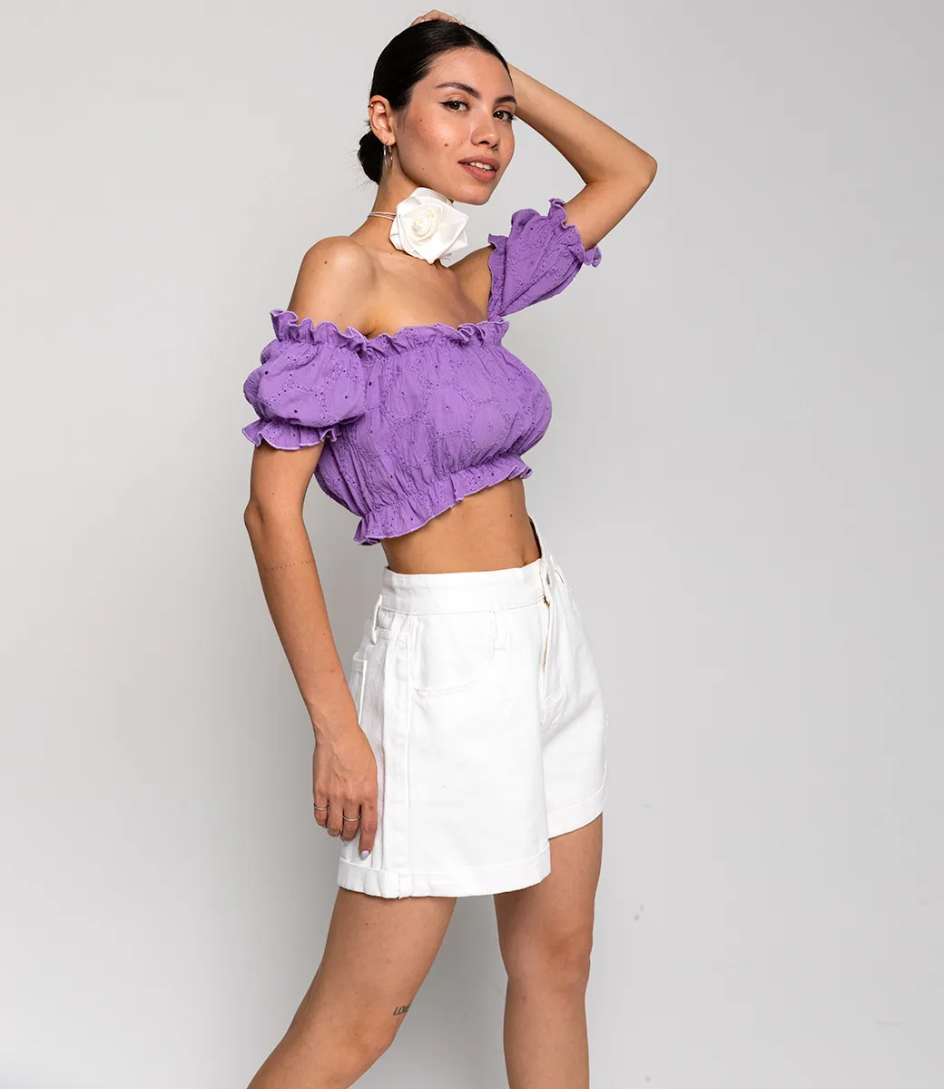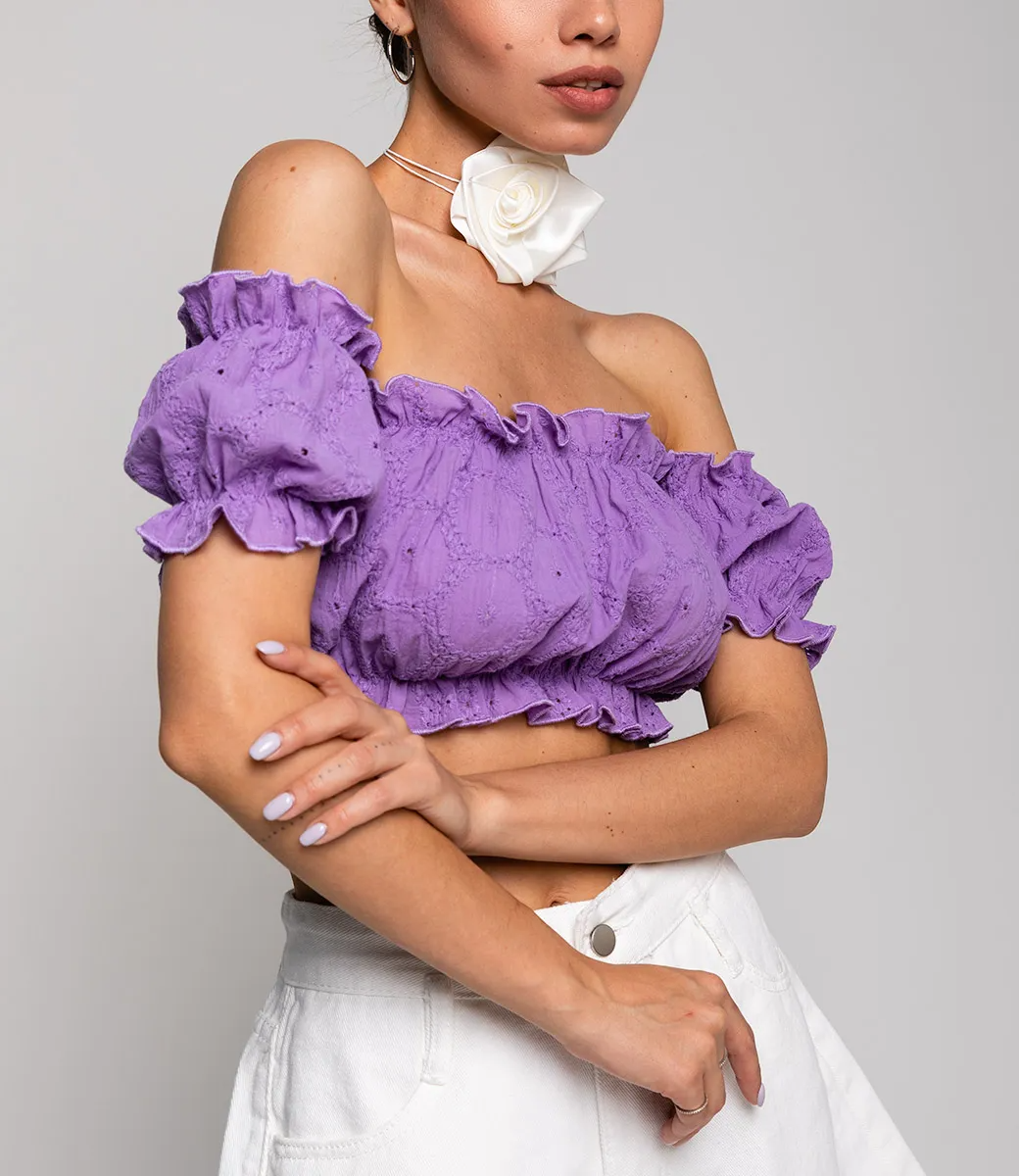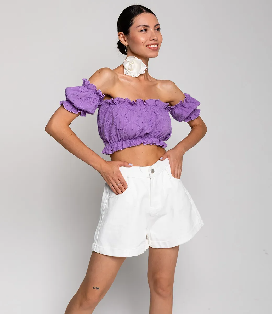 Нежный топ из 100% хлопка – отличный вариант для жаркой погоды. Топ подойдет для создания повседневного и романтического образа. Его можно сочетать с юбкой, брюками, джинсами, шортами.
