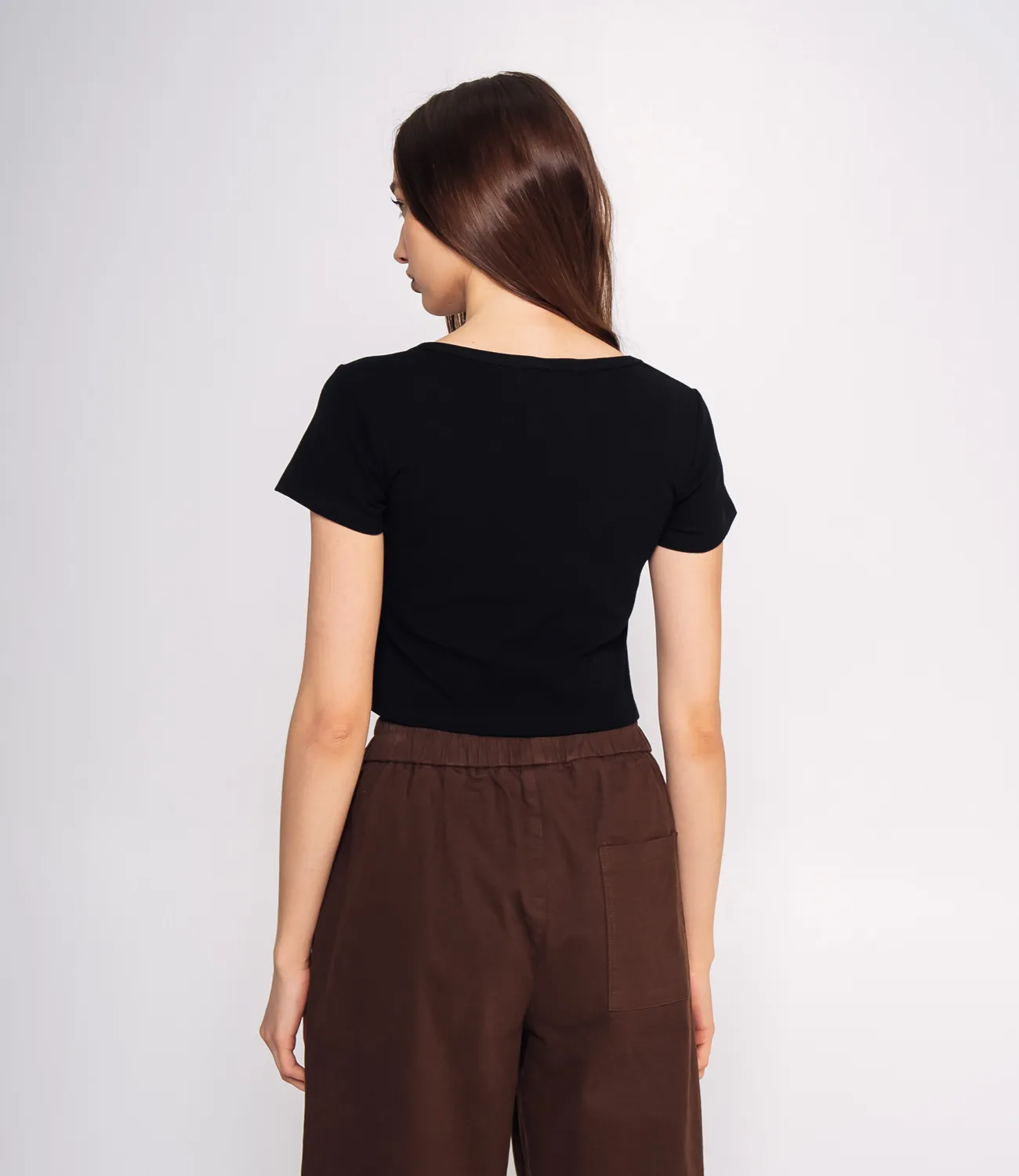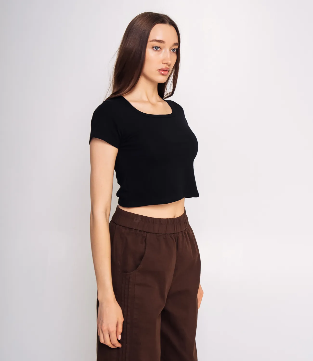 Топ – это незаменимый элемент гардероба, который подчеркивает индивидуальность и стиль каждой женщины. Эта модель, представленная в современном дизайне с короткими рукавами и круглым вырезом, придаёт ей привлекательный вид и легкость. Укороченный крой отлично выделяет талию, создавая эффект стройности и элегантности. Изготовленный из 93% хлопка и 7% эластана, этот топ мягкий и приятный на ощупь, что обеспечивает комфорт в носке в любое время года. Он станет отличным выбором для повседневного образа, а также прекрасно дополнит нарядный аутфит, идеально сочетаясь с брюками или юбками с высокой талией. Обратите внимание на качество материала: даже после множества стирок топ сохранит свою первоначальную форму и яркие цвета. Мы знаем, что удобство выбора размера важно для ваших клиентов, поэтому на сайте предоставлена таблица с размерами, где они легко смогут произвести замеры и выбрать идеальное соответствие. Цена этого стильного топа является доступной, что открывает отличные возможности для выгодной покупки. Не упустите шанс обновить ассортименты вашего магазина этой универсальной и изысканной моделью, которая станет любимым предметом гардероба ваших покупателей и поможет им чувствовать себя неотразимо! Рост модели: 168, параметры: 85-63-92.