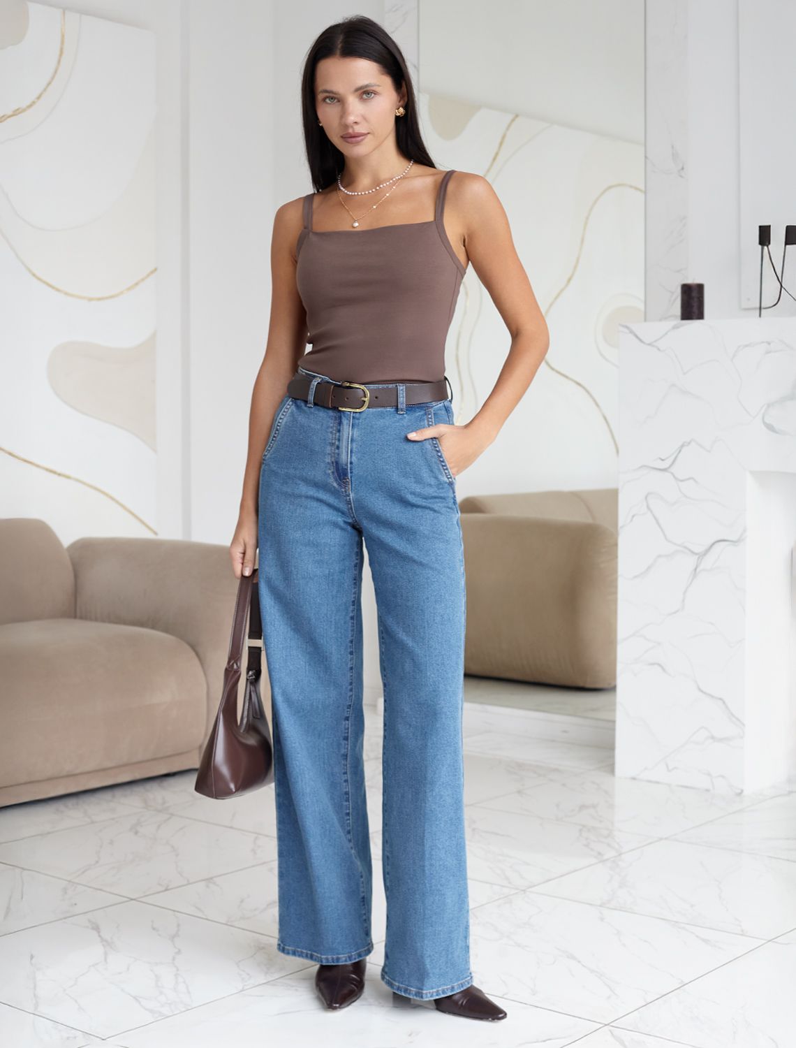 Стильный и базовый топ темно-кофейного цвета полуприлегающего кроя идеально подходит для девушек и женщин всех возрастов. Двуслойная зона бра. Линия декольте образована посредством сгиба полотна без отсрочки и закреплением обоих слоев в шве проймы. Удобные регулируемые бретели. Прямой силуэт подходит любому типу фигуры. Квадратный вырез горловины - тренд этого сезона. Он выполнен из качественной дышащей ткани, что обеспечивает комфорт в жаркую погоду. Однотонный дизайн позволяет легко сочетать его с различными предметами гардероба, создавая элегантный повседневный образ.