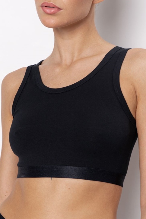 Кроп-топ на широких бретелях. Незаменимый атрибут для любительниц занятий спортом. Модель на широкой резинке, поддерживающей грудь. Топ представлен в трех цветовых решениях. Отлично комбинируется с любыми лосинами, шортами или брюками.
