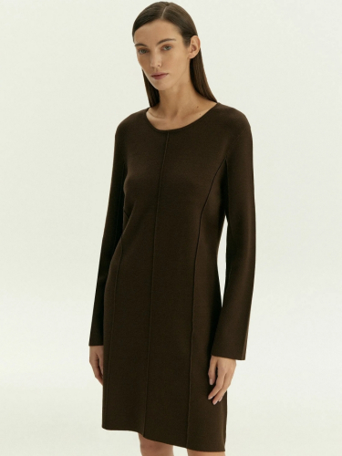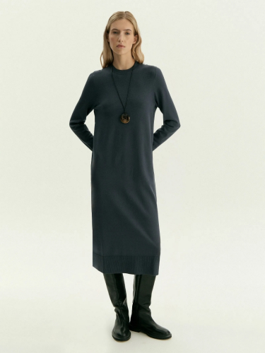 Трикотажное платье в модном оттенке мокрого асфальта отлично впишется в повседневный гардероб. В меру свободное, с длинными рукавами и круглым вырезом, оно не стесняет движений и комфортно ощущается на теле. Платье выполнено из материала с высоким содержанием дышащей и мягкой вискозы: материал хорошо подходит на демисезон