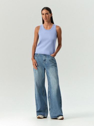 Комфортный топ из вискозы отлично садится по фигуре. Позволяет продемонстировать красивые плечи и ключицы. Станет основой множества повседневных образов. Сочетается с любым денимом, рубашками, жакетами любых фасонов. Выполнен в модном голубом цвете