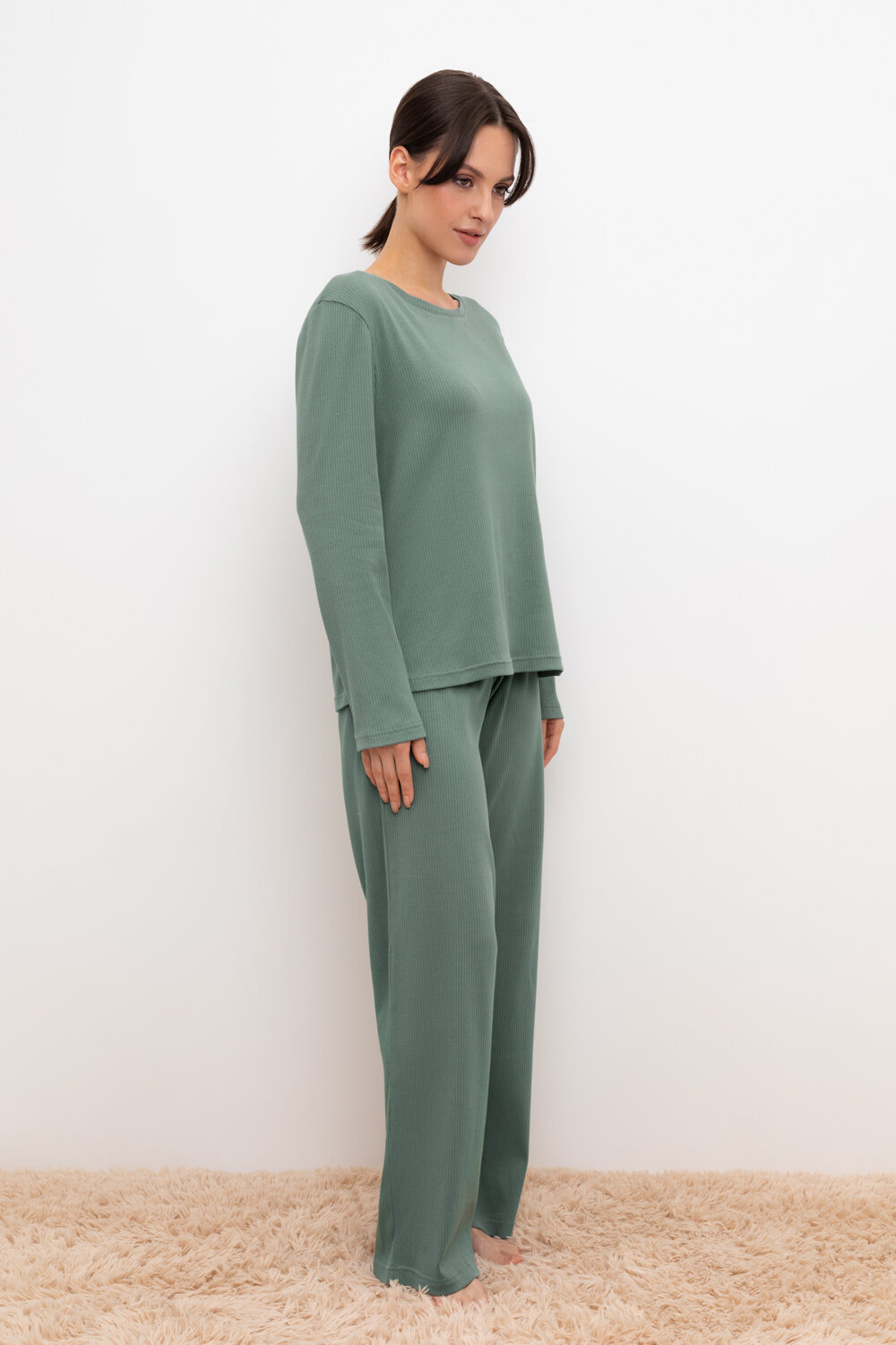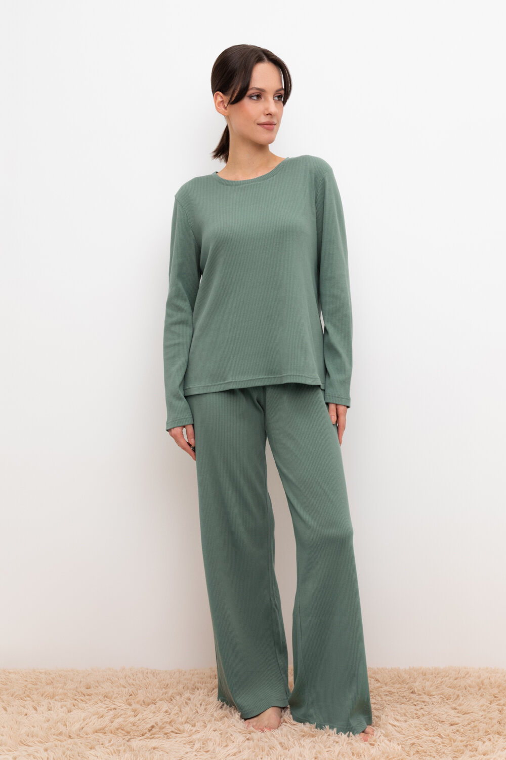 Лёгкие комфортные брюки из трикотажа с добавлением спандекса. Модель с поясом на резинке. Низ изделия обработан плоскими швами. Гладкий материал приятен к телу, не теряет форму и позволяет коже дышать.