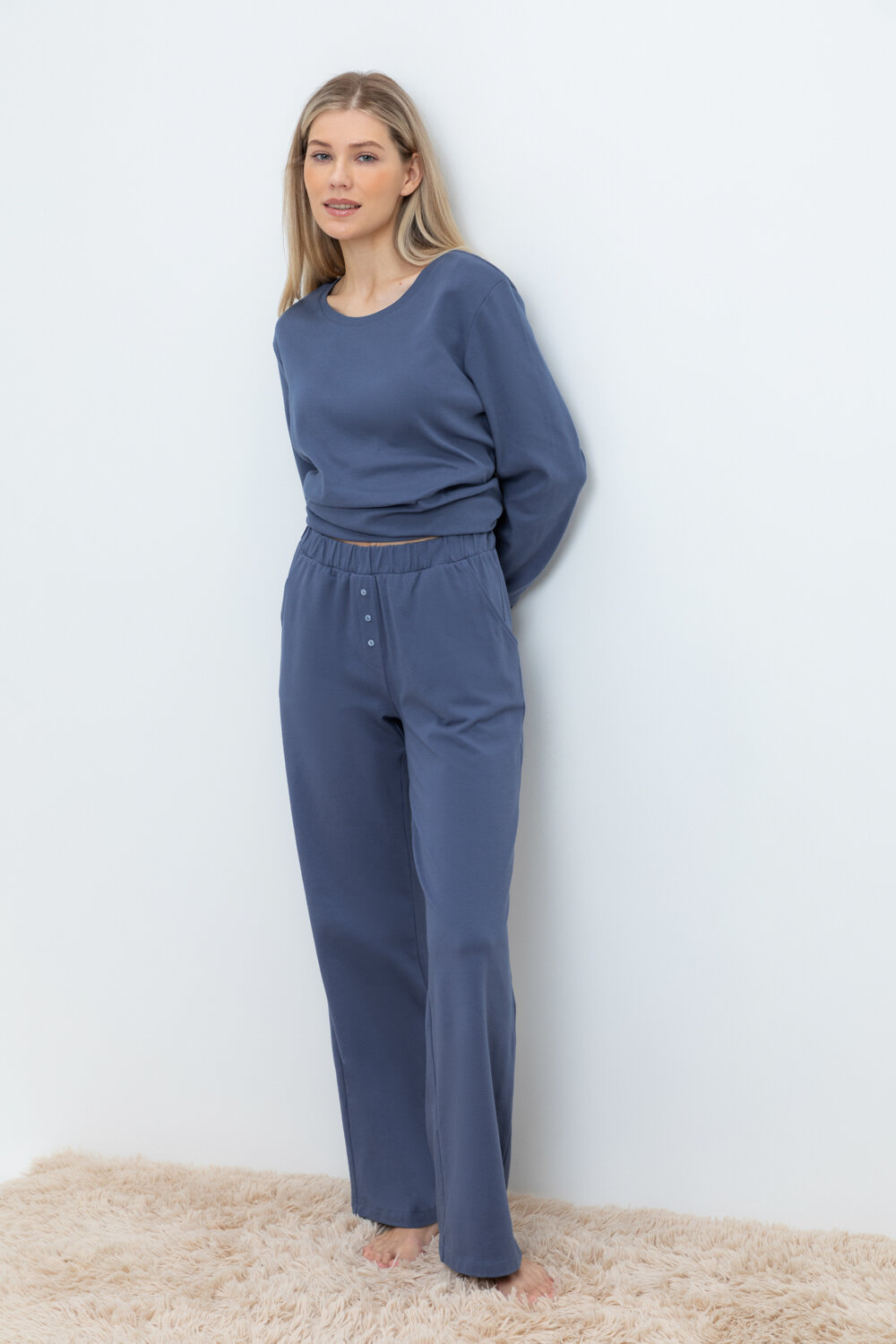 Лёгкие комфортные брюки из трикотажа с добавлением лайкры. Модель с поясом на резинке и боковыми карманами. Низ изделия обработан плоскими швами. Гладкий материал приятен к телу, не теряет форму и позволяет коже дышать.