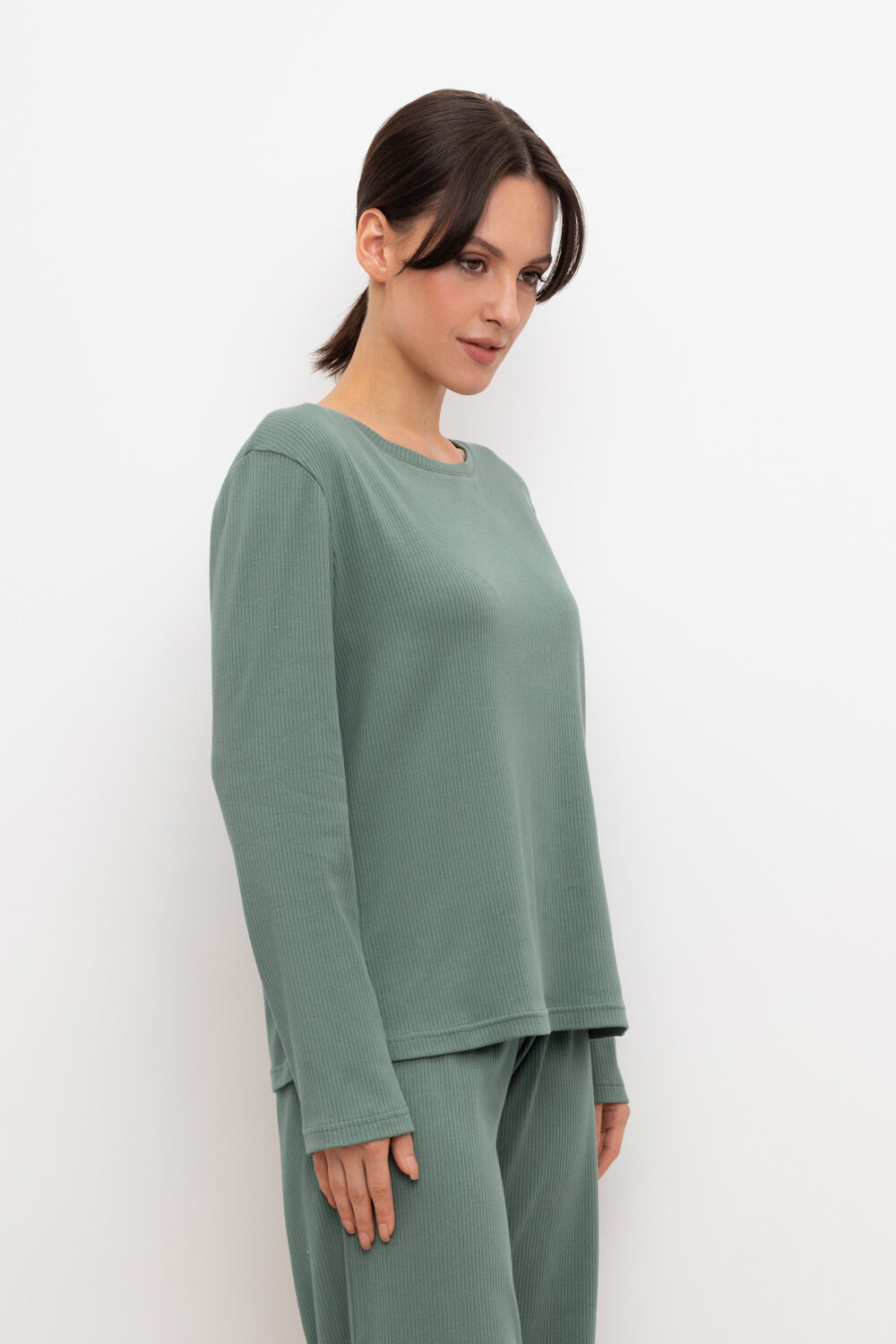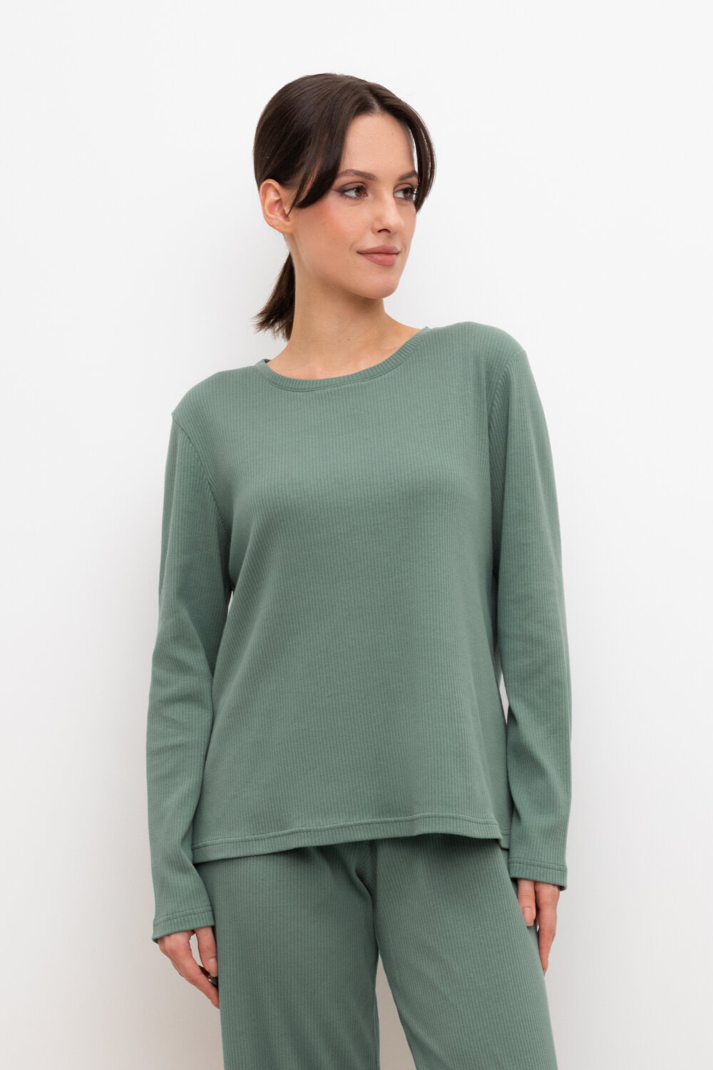 Комфортный джемпер из трикотажного полотна в рубчик .