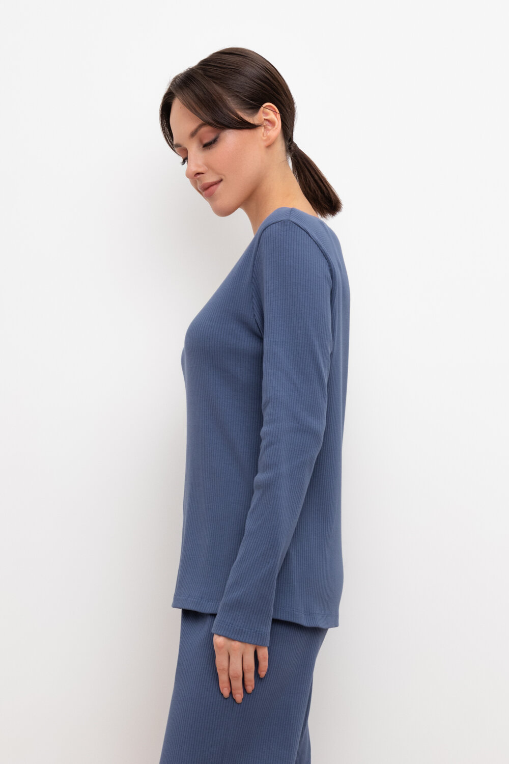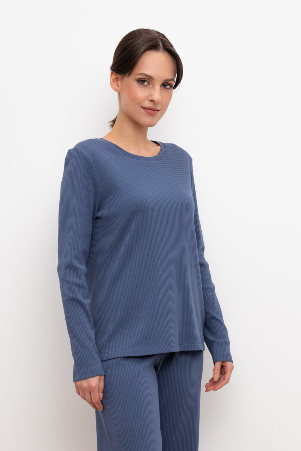 Комфортный джемпер из трикотажного полотна в рубчик.