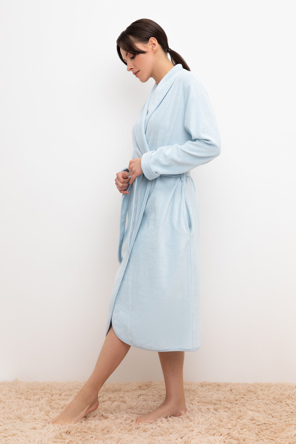 Уютный халат из 100% натурального хлопка на запах с длинными рукавами. В боковых швах два удобных кармана. С помощью пояса можно регулировать посадку и силуэт. Махровое полотно прекрасно впитывает влагу и сохраняет тепло.