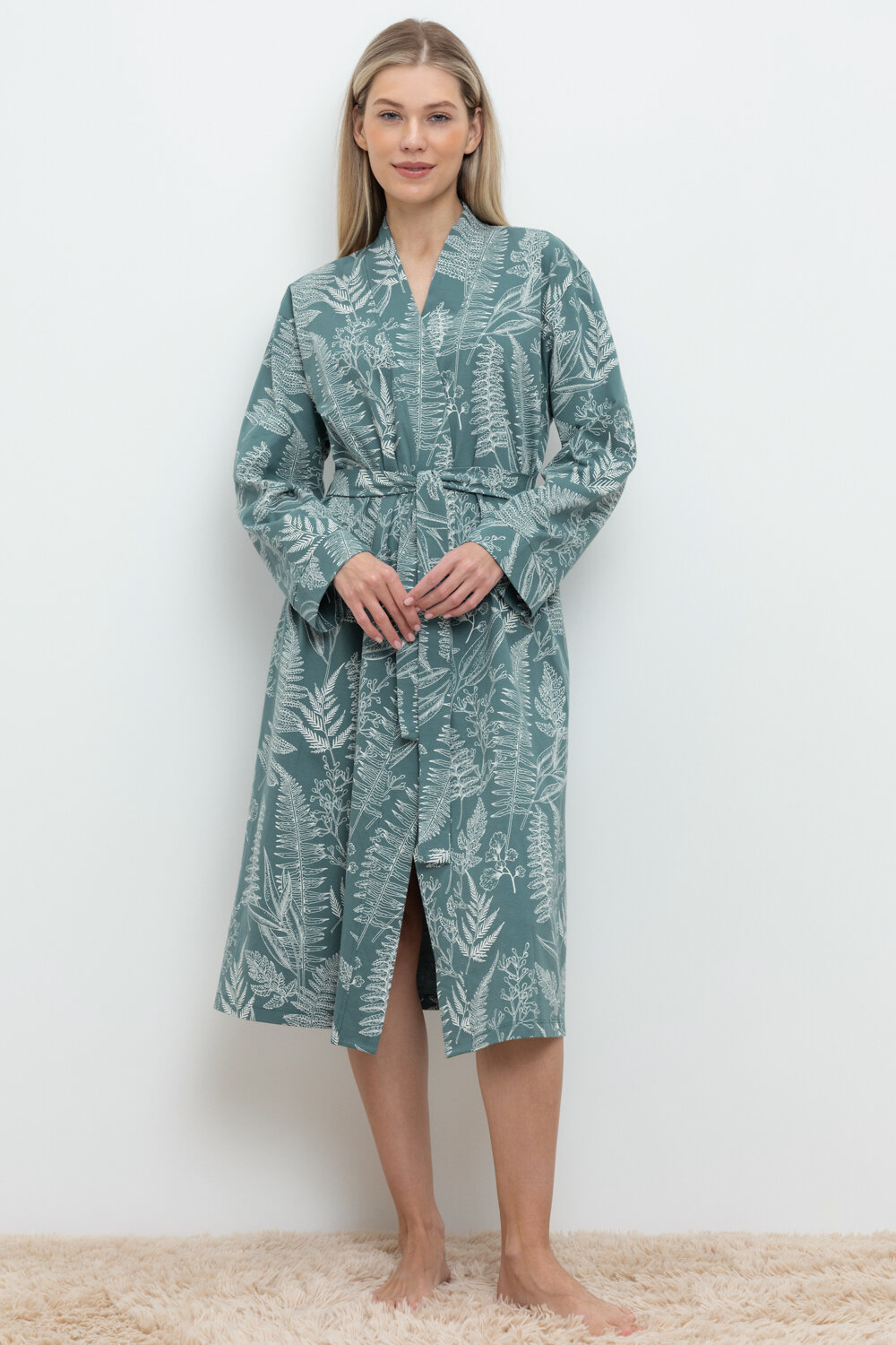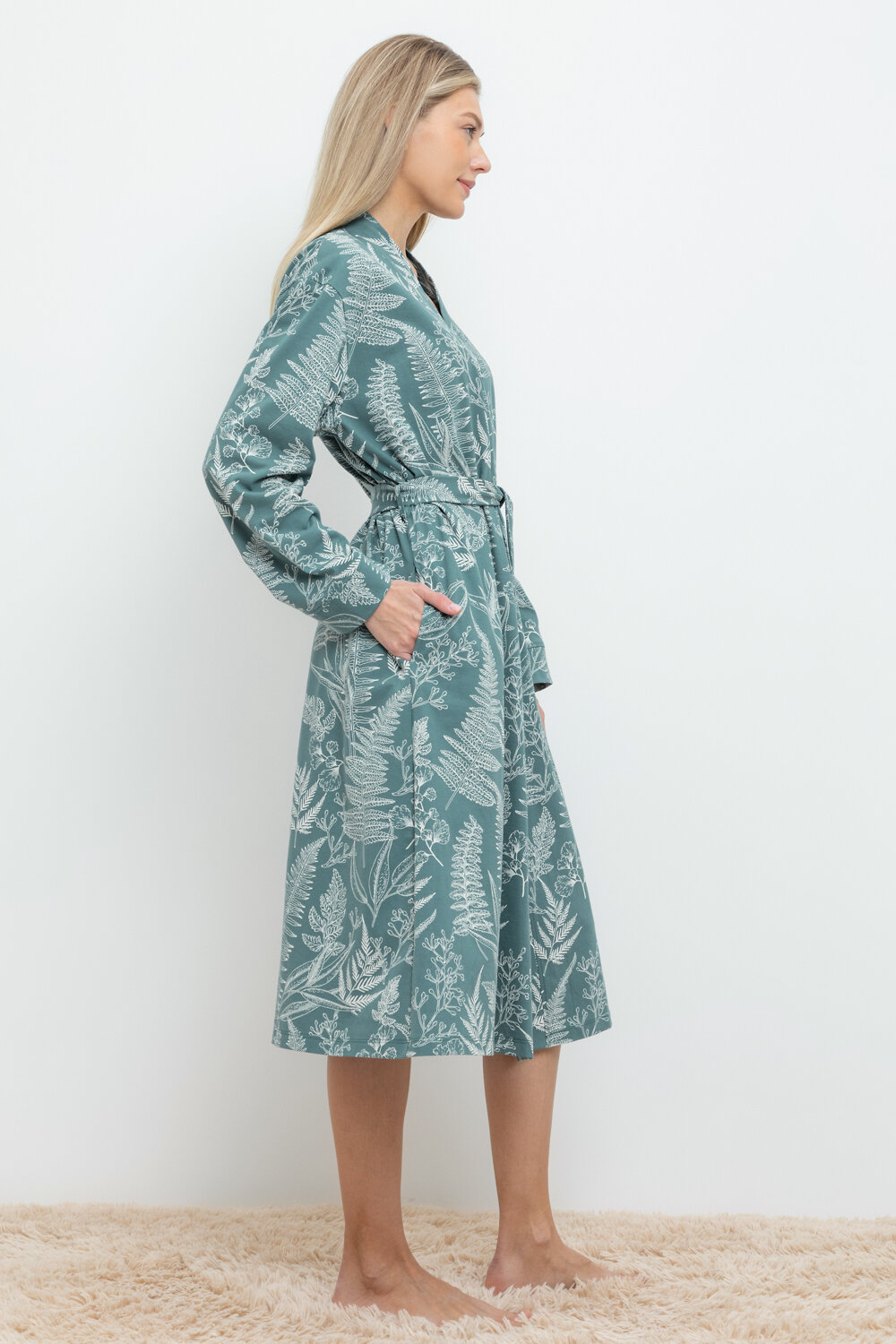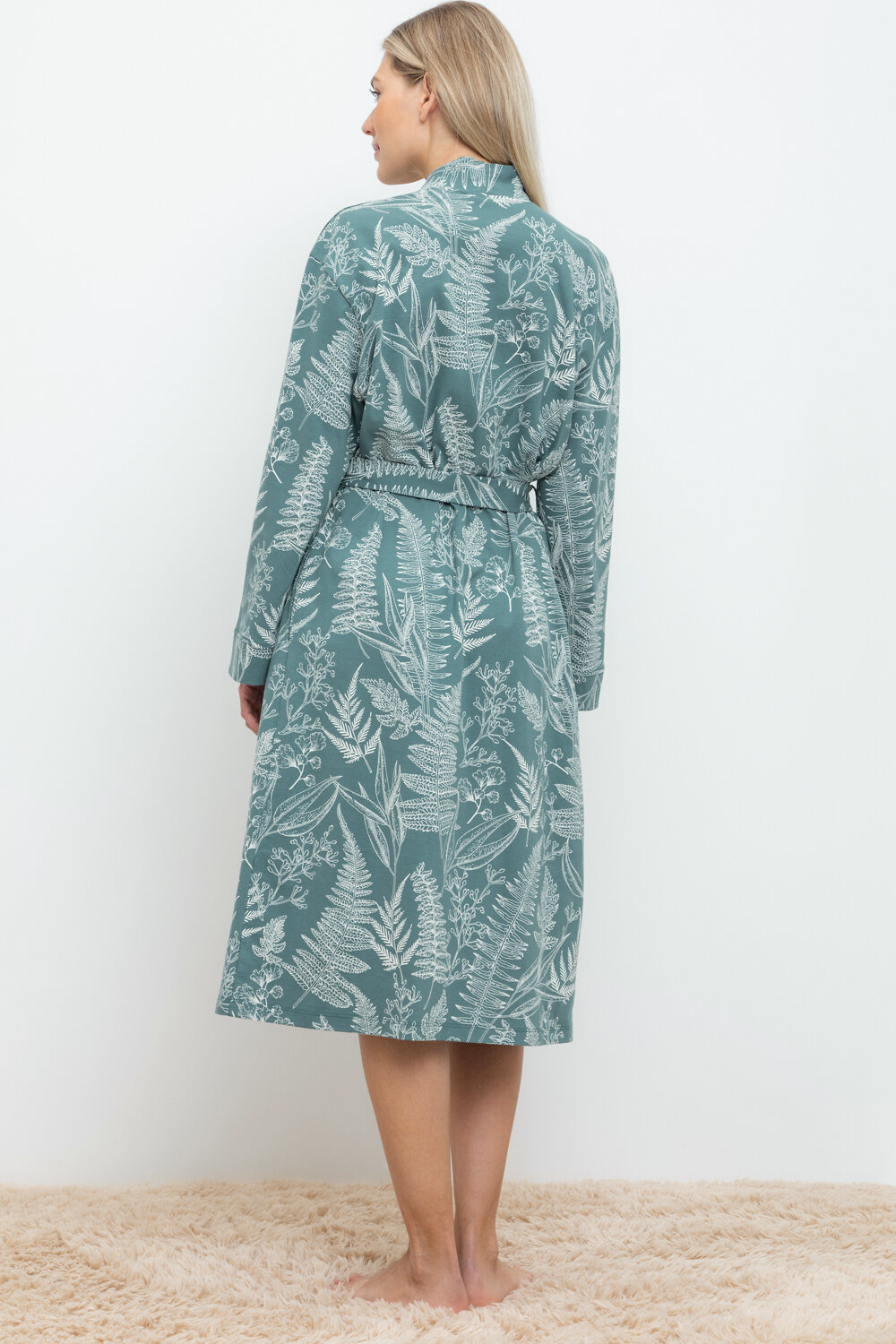 Уютный легкий халат из набивного трикотажа на запах с длинными рукавами. В боковых швах два удобных кармана. С помощью пояса можно регулировать посадку и силуэт. Гладкий материал приятен к телу и позволяет коже дышать.