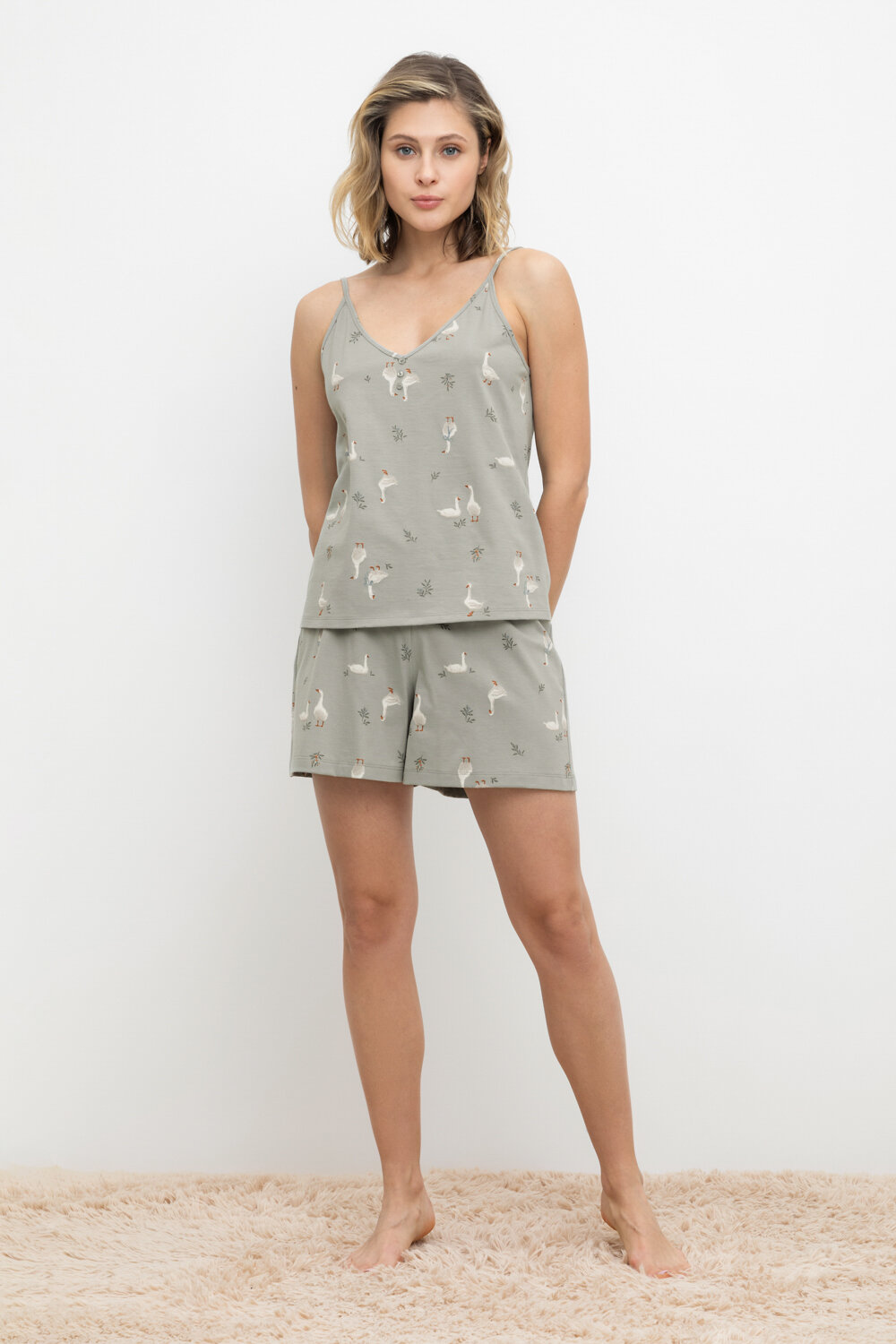 Комплект для комфортного сна из набивного трикотажа с нежным рисунком из 100% натурального хлопка. Майка на регулируемых бретелях удобно садится по фигуре. Шорты с мягким поясом на резинке. Гладкий материал приятен к телу, не теряет форму и позволяет коже дышать.