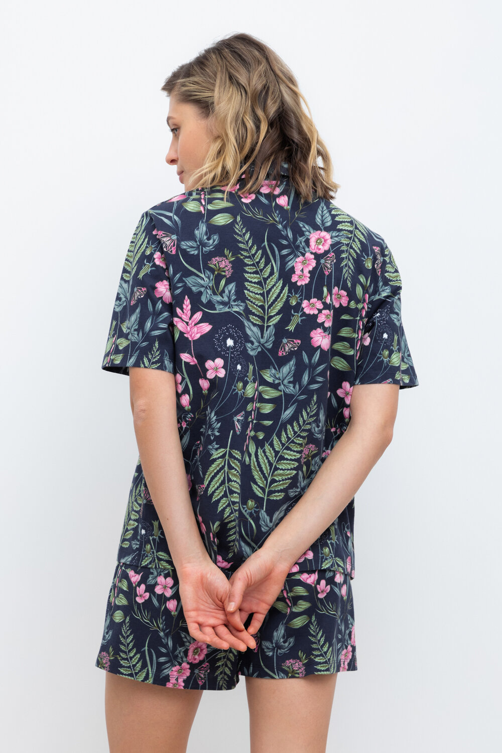 Комплект для комфортного сна из набивного трикотажа с нежным рисунком из 100% натурального хлопка. Рубашка с короткими рукавами на пуговицах. Шорты с мягким поясом на резинке. Гладкий материал приятен к телу, не теряет форму и позволяет коже дышать.