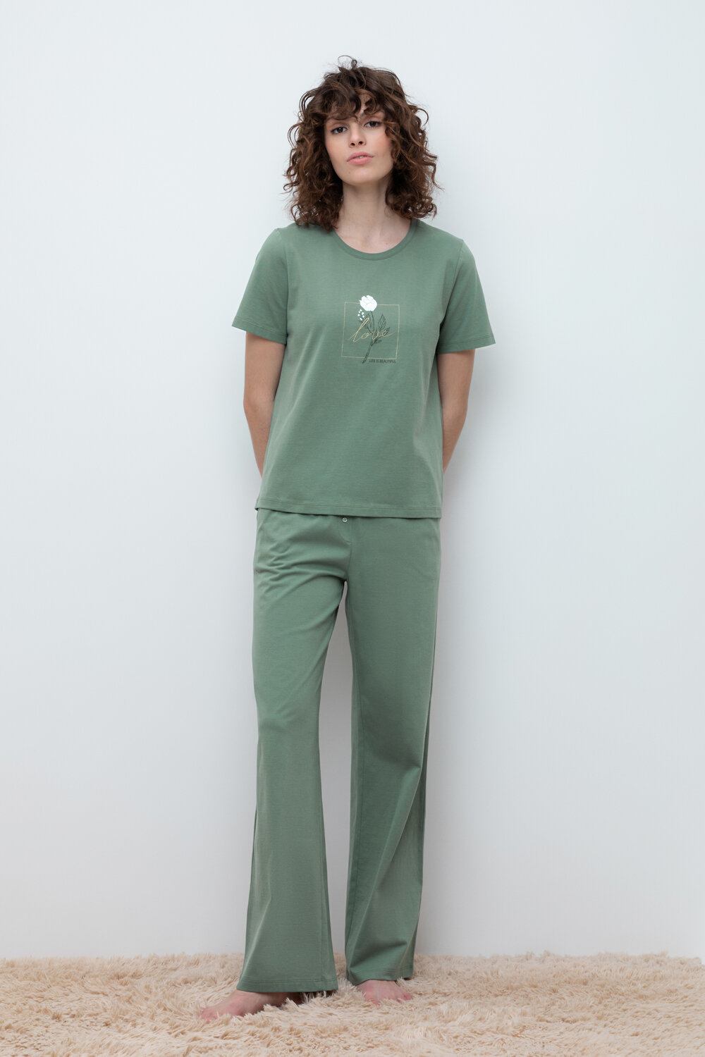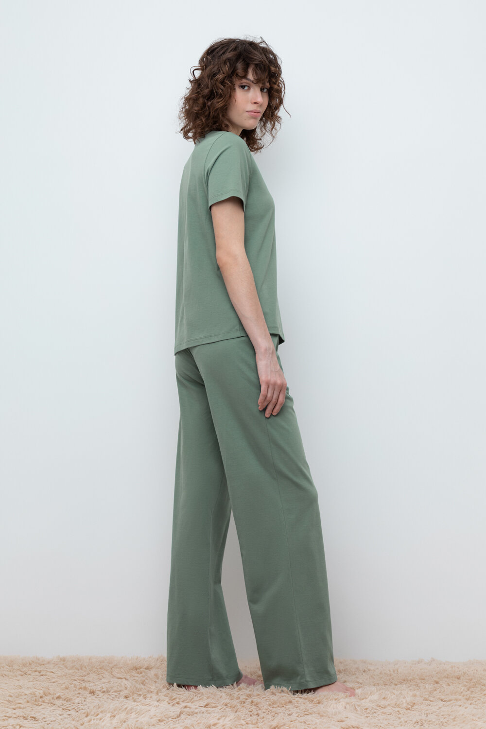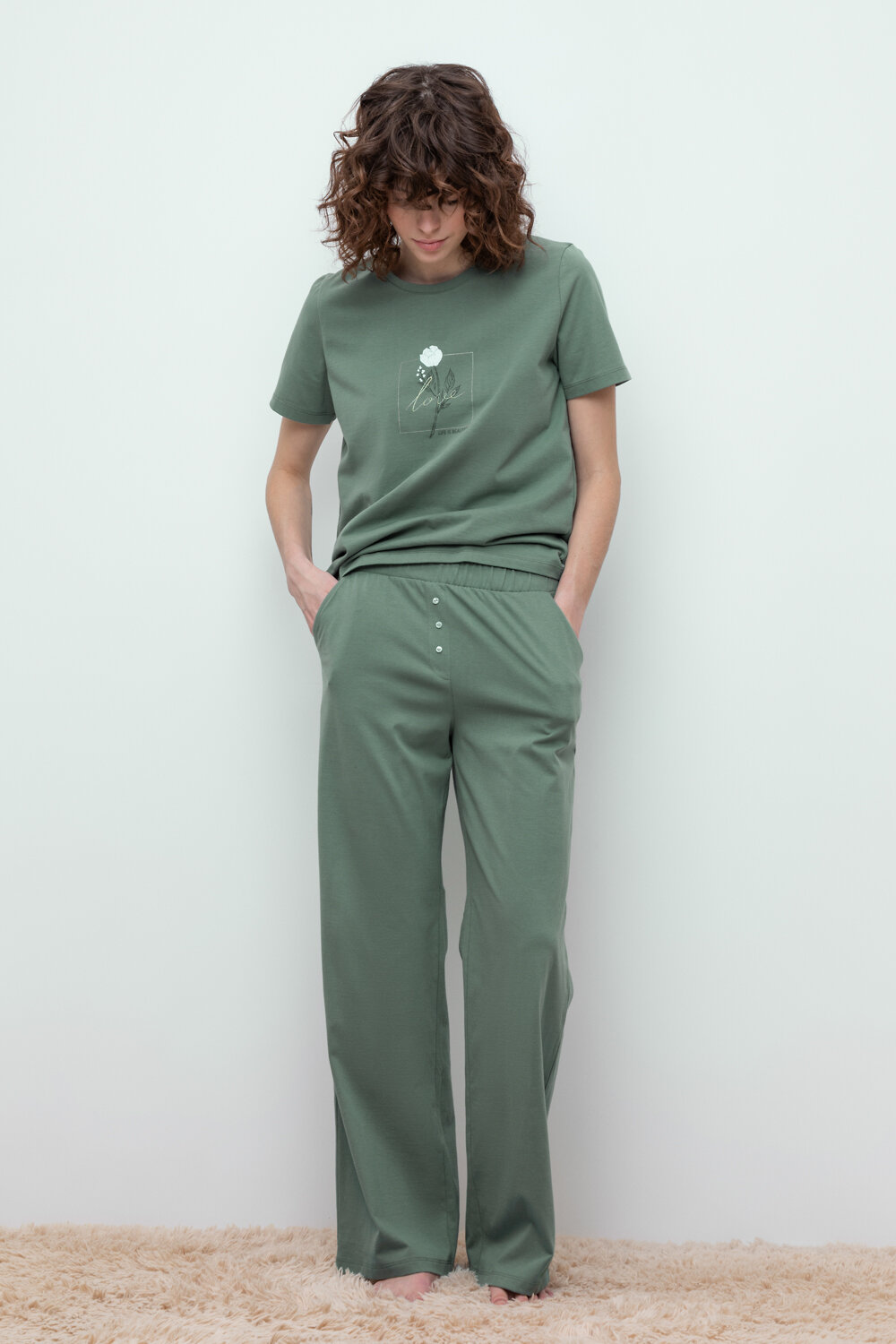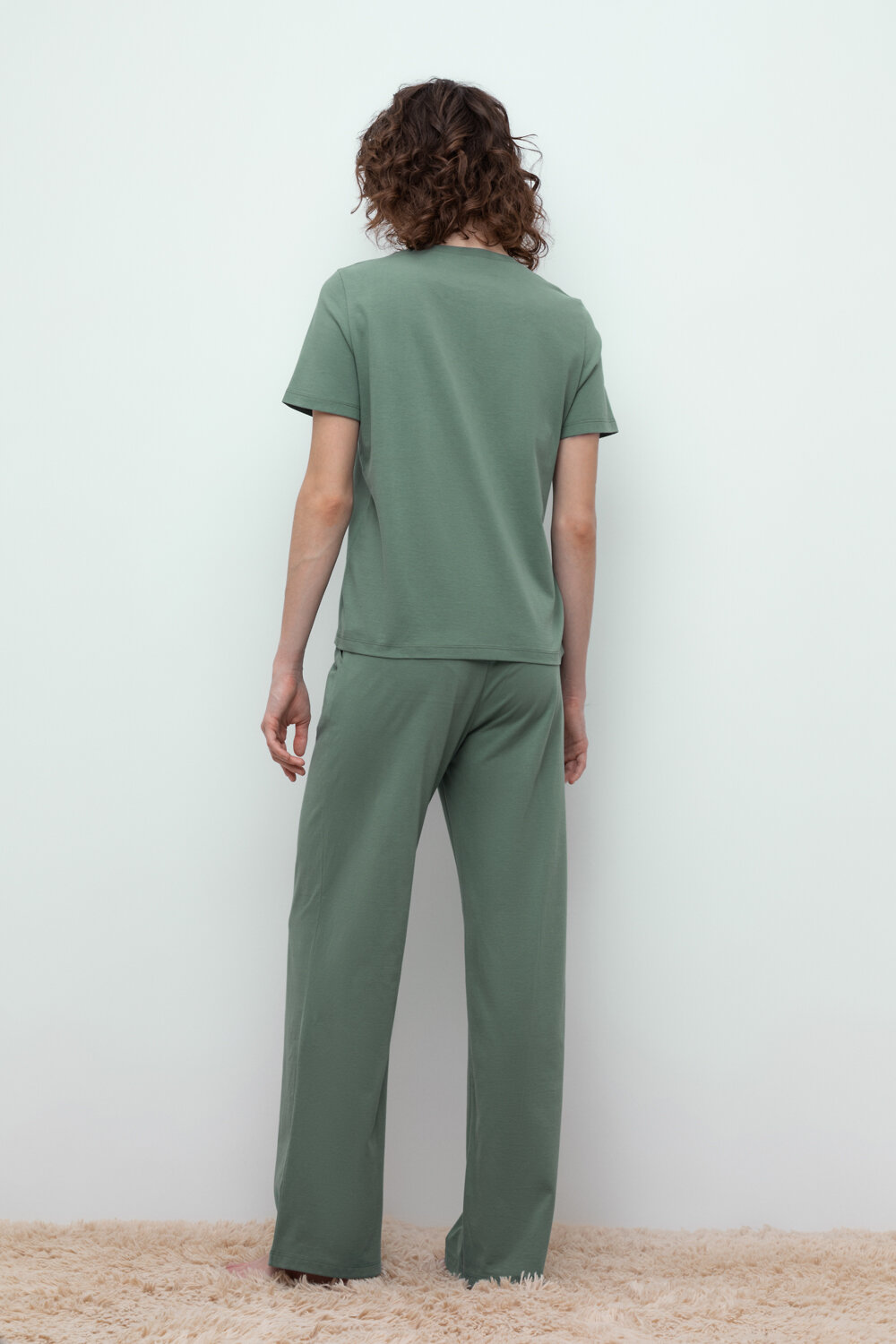 Легкий комплект для комфортного сна и отдыха. Футболка стандартной длины с короткими рукавами комфортно садится по фигуре. Брюки с удобными боковыми карманами выполнены из набивного трикотажа. Свободный силуэт не сковывает движения. Гладкий материал приятен к телу и позволяет коже дышать.