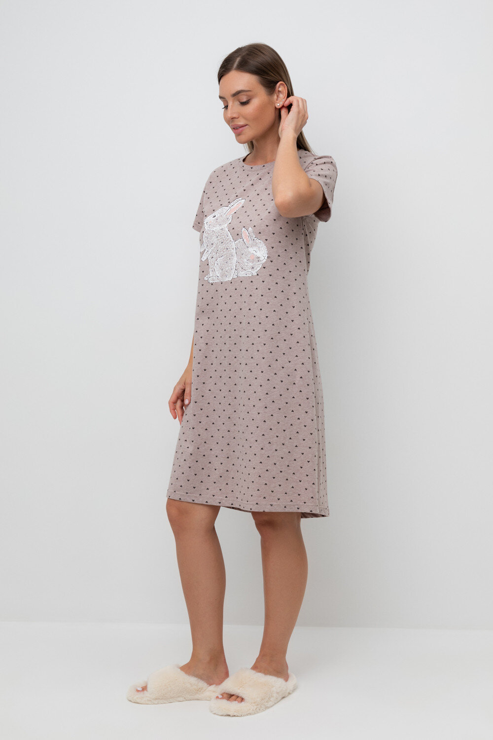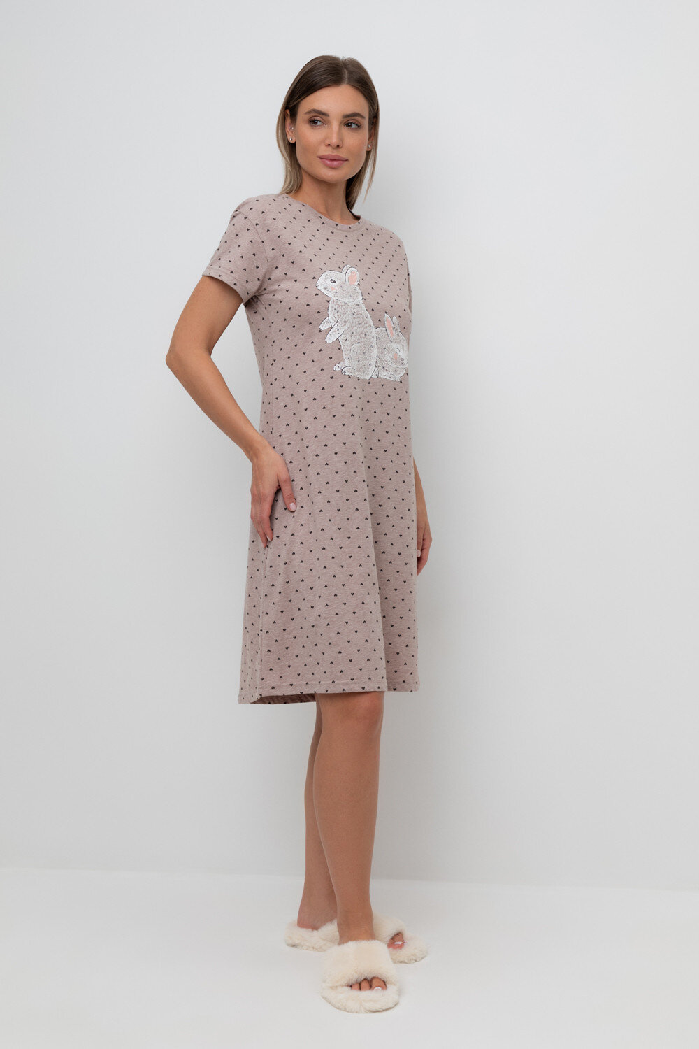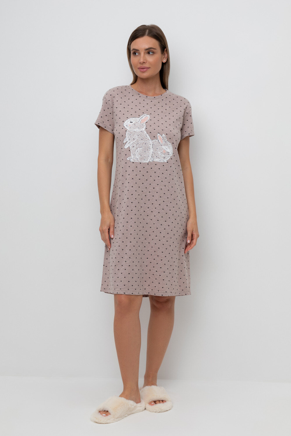 Уютная удлиненная сорочка с короткими рукавами из 100% натурального хлопка. Выполнена из набивного трикотажа супрем с нежным рисунком.