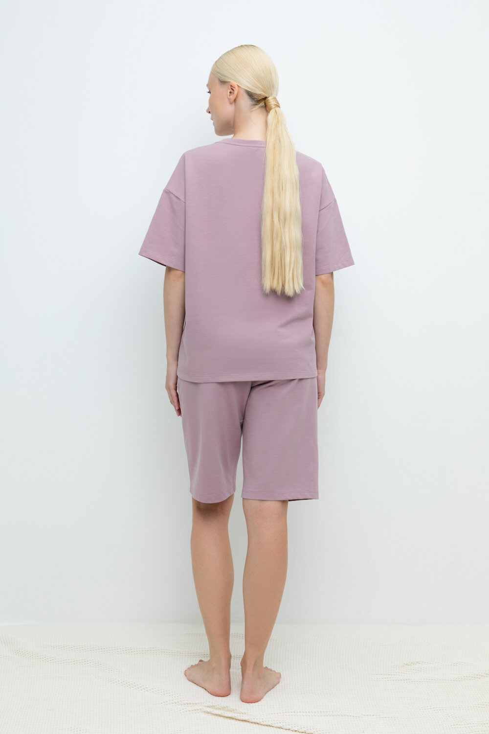 Комплект для комфортного отдыха из мягкого футера. Футболка с короткими рукавами и спущенной линией плеча комфортно садится по фигуре. Шорты с карманами и мягким поясом на резинке. Свободный силуэт не сковывает движения.
