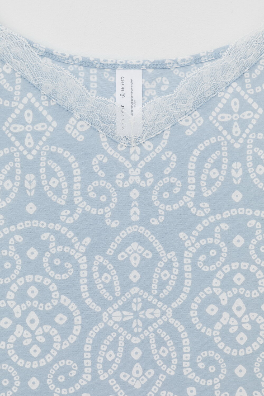 Элегантная сорочка на бретелях из 100% натурального хлопка для комфортного сна. На груди эластичное кружево. Гладкий материал приятен к телу и позволяет коже дышать.