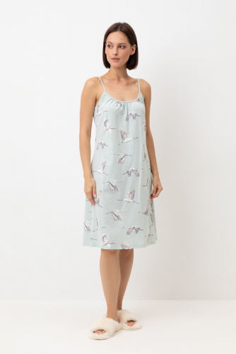 Уютная удлиненная сорочка с короткими рукавами из 100% натурального хлопка. Горловина украшена эластичным кружевом. Выполнена из набивного трикотажа супрем с нежным рисунком.