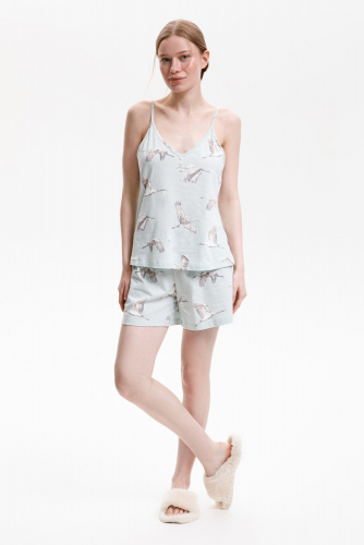 Комплект для комфортного сна из трикотажного полотна. Майка из эластичного трикотажа с добавлением лайкры в рубчик. Шорты с мягким поясом на резинке удобно садятся по фигуре. Гладкий материал приятен к телу, не теряет форму и позволяет коже дышать.