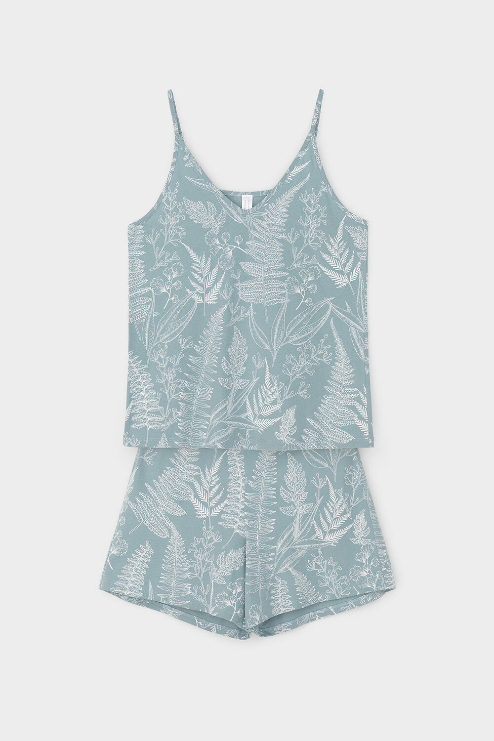 Комплект для комфортного сна из набивного трикотажа с нежным рисунком из 100% натурального хлопка. Майка на регулируемых бретелях удобно садится по фигуре. Шорты с мягким поясом на резинке. Гладкий материал приятен к телу, не теряет форму и позволяет коже дышать.