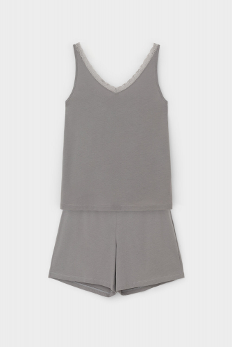 Комплект для комфортного отдыха из набивного трикотажа с нежным рисунком. Футболка с короткими рукавами и спущенной линией плеча комфортно садится по фигуре. Шорты с мягким поясом на резинке. Свободный силуэт не сковывает движения.