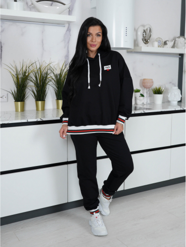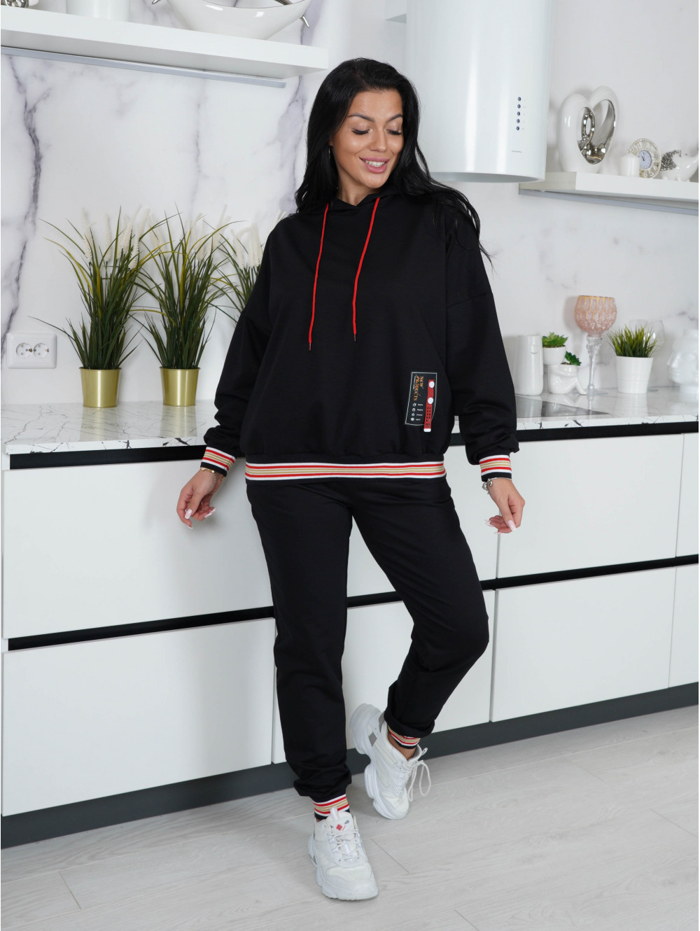 Костюм "ТРИУМФ"- это удобный повседневный образ и одежда для активного отдыха. Выполнен из футера 2-х нитки с лайкрой. За счет натурального состава и достаточно плотной ткани легкий костюм двойка не вытягивается, не теряет внешний вид и форму после стирок. Комплект состоит из свободной толстовки с длинным рукавом и брюк - джоггеров, благодаря полуприлегающему силуэту и ярким вставкам, выигрышно выделяется среди многих других костюмов. Низ и рукава кофты на манжете, округлый вырез горловины, с капюшоном. Высокая посадка брюк, свободный крой, благодаря чему нет скованности движений. На щиколотках - мягкая резинка для общего удобства. Изделие очень приятное на ощупь и необыкновенно комфортное в носке. Данная модель подходит как для прогулок и дома, так и для выезда на природу. Джоггеры сочетаются с футболкой и топом. Худи можно носить с шортами, юбкой, лосинами и джинсами. В наличии есть большие размеры, поэтому подойдет для беременных и станет прекрасным подарком на день рождения