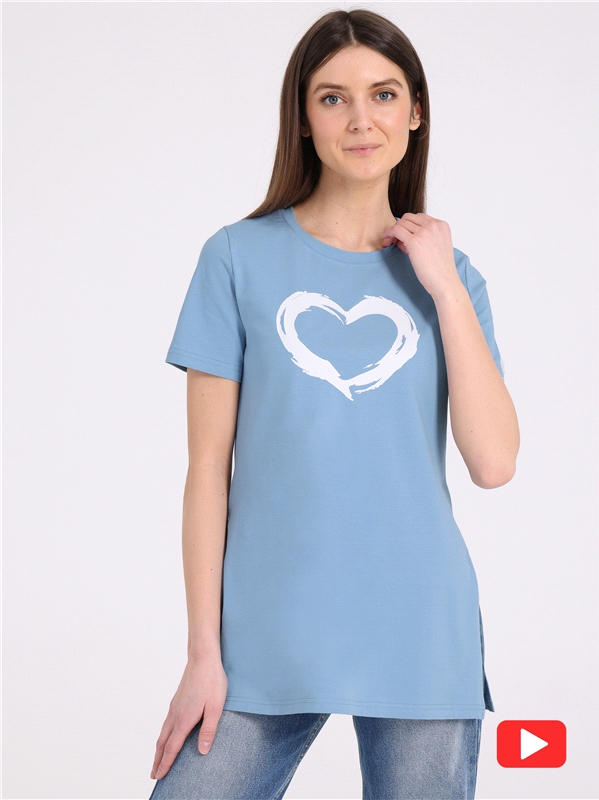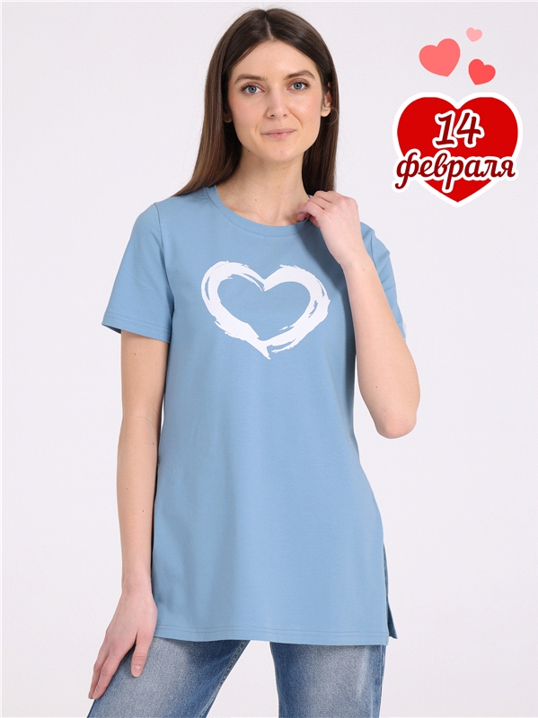 кулир с лайкрой / хлопок 92% + лайкра 8% серо-голубой250 / - / Сердце кистью