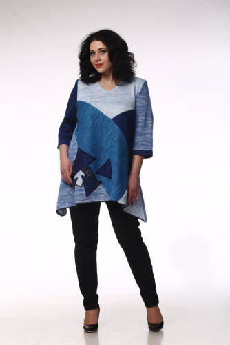 Описание: Туника с неровной линией низа, отделка, спинка однотонная со швом по центру, трикотаж