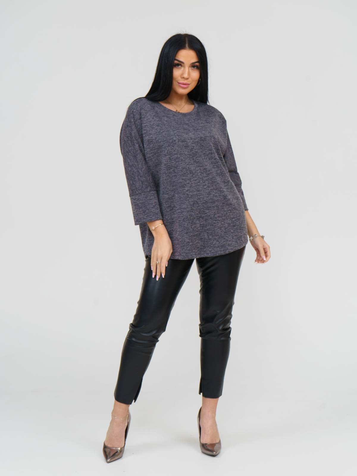 Легкая трикотажная туника станет Вашей любимой вещью на осень, весну, зиму и прохладные летние вечера. Модель имеет комфортный рукав 3/4, "летучая мышь". Модель ориентирована на большие размеры. Джемпер выполнен из немнущейся ткани, легкой в уходе. Благодаря свободному силуэту, эластичному трикотажу, кофта идеально садится на любую фигуру и подчеркивает ее достоинства.