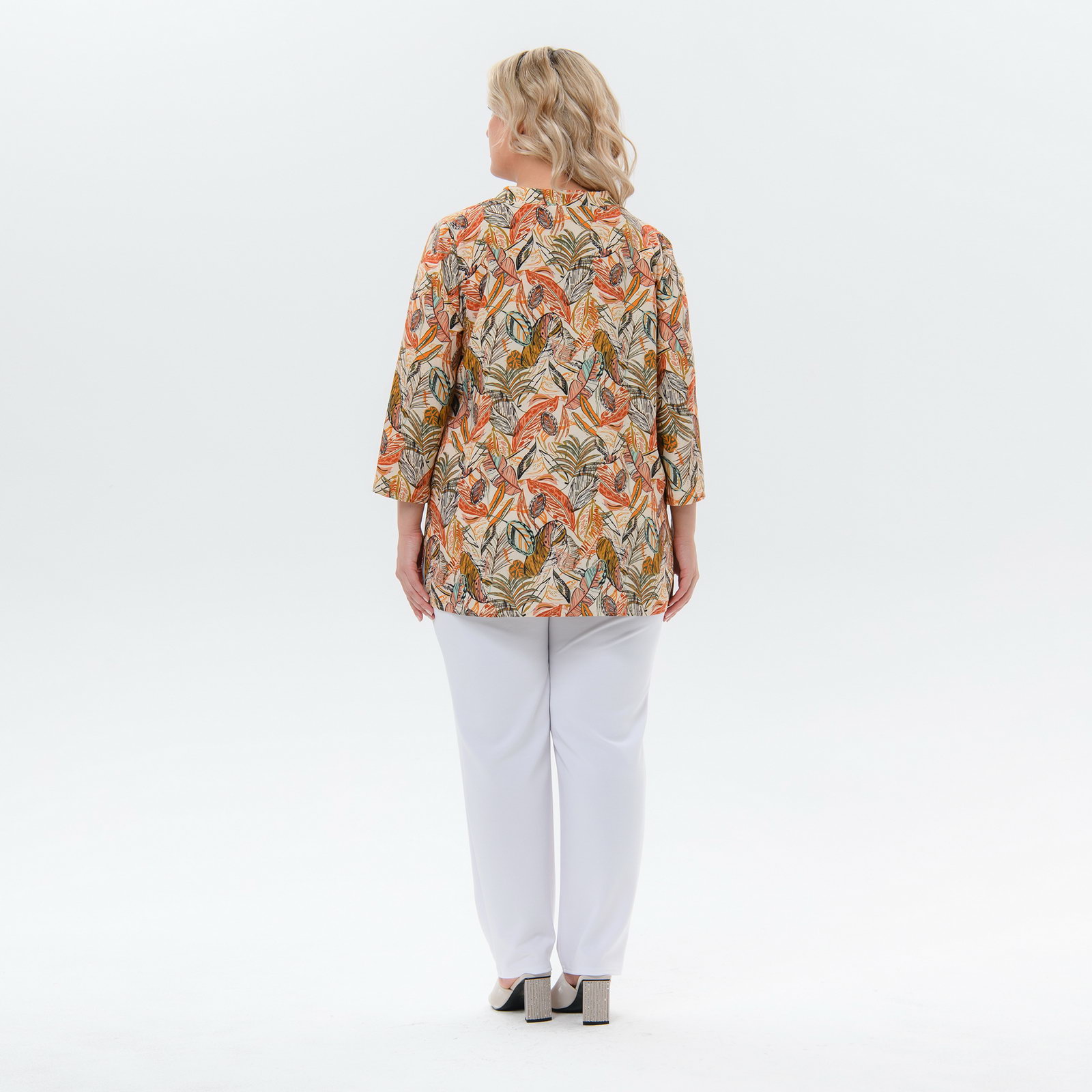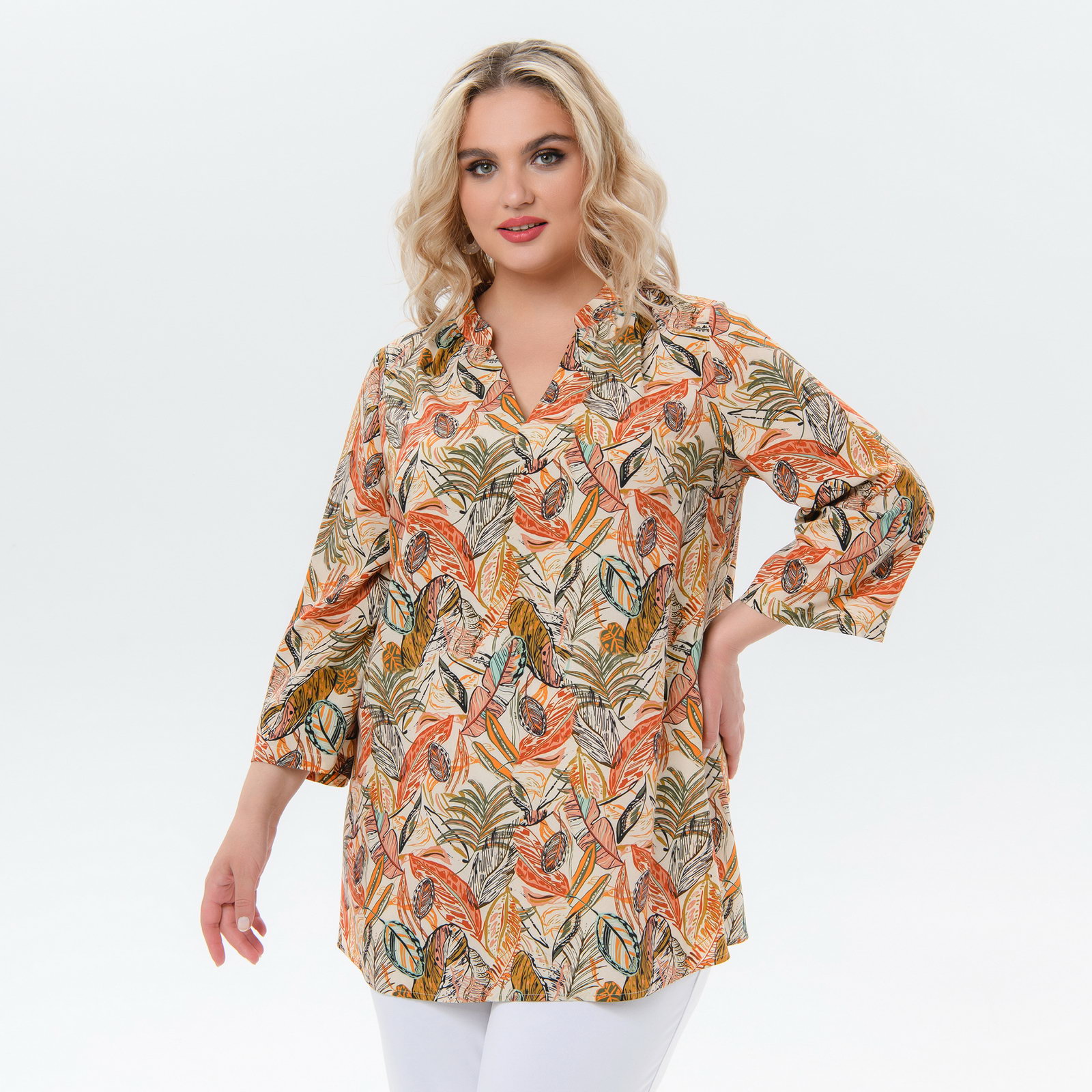 Туника - рубашка из принтованого штапеля прямого силуэта. V-вырез по горловине с плосколежащим воротником - стоечкой
