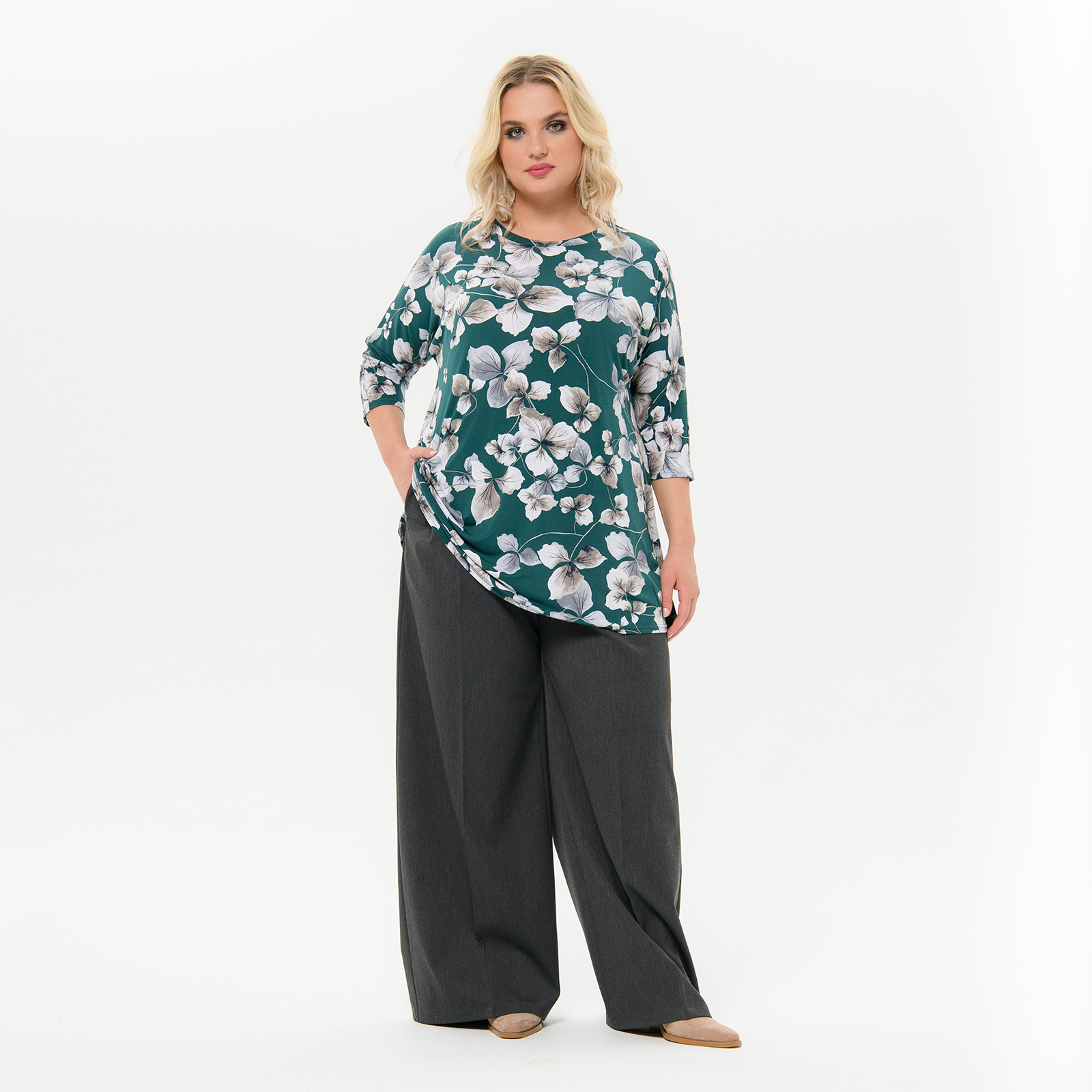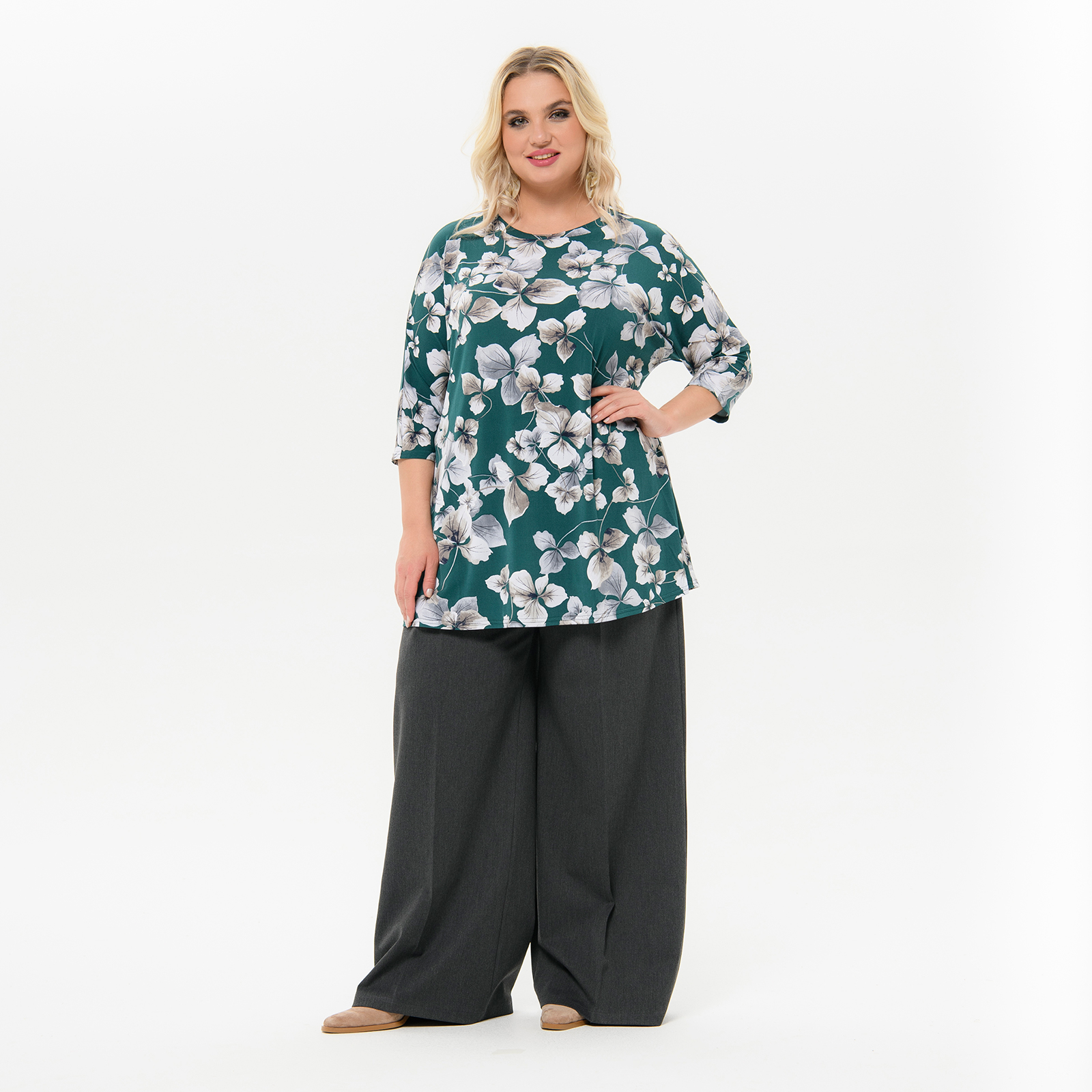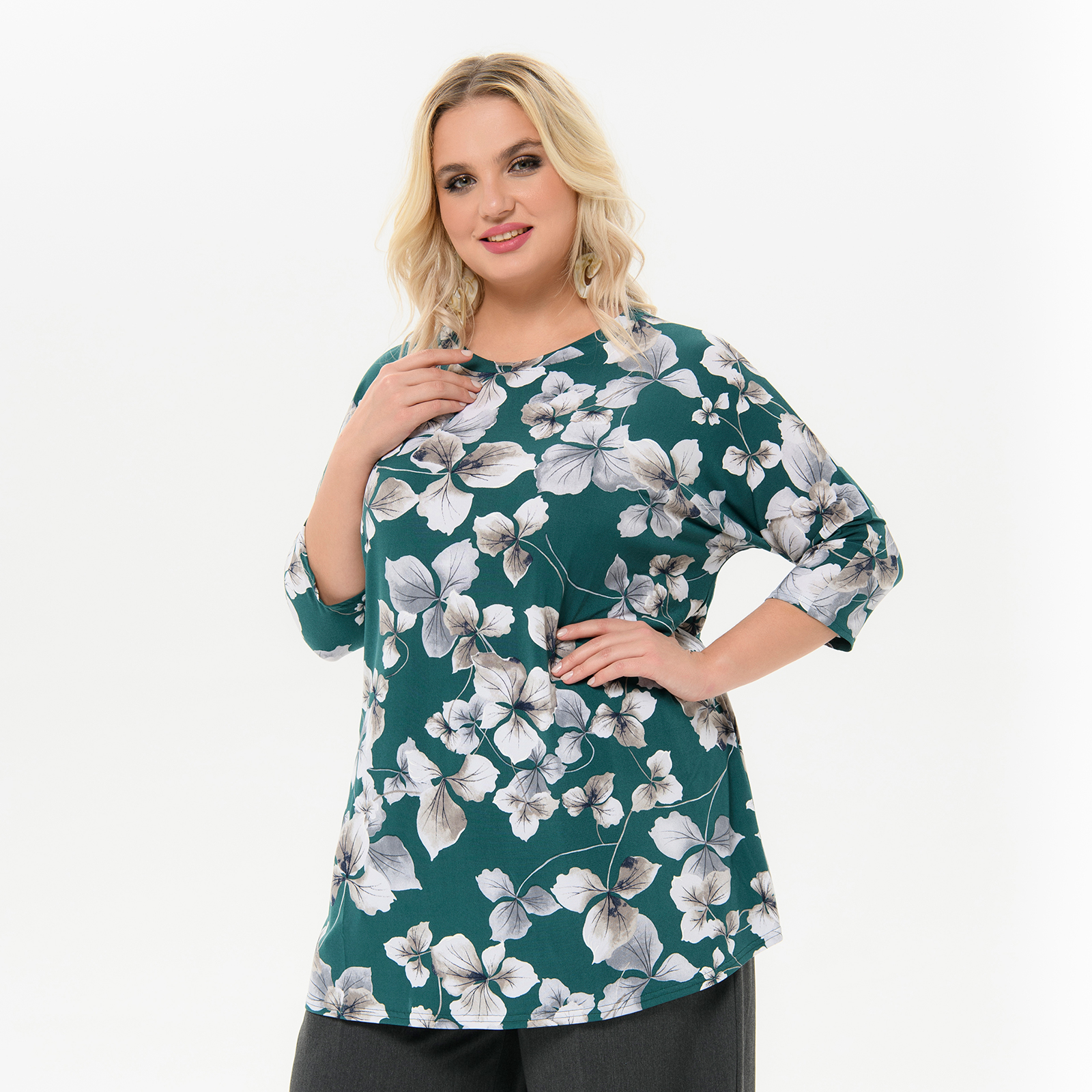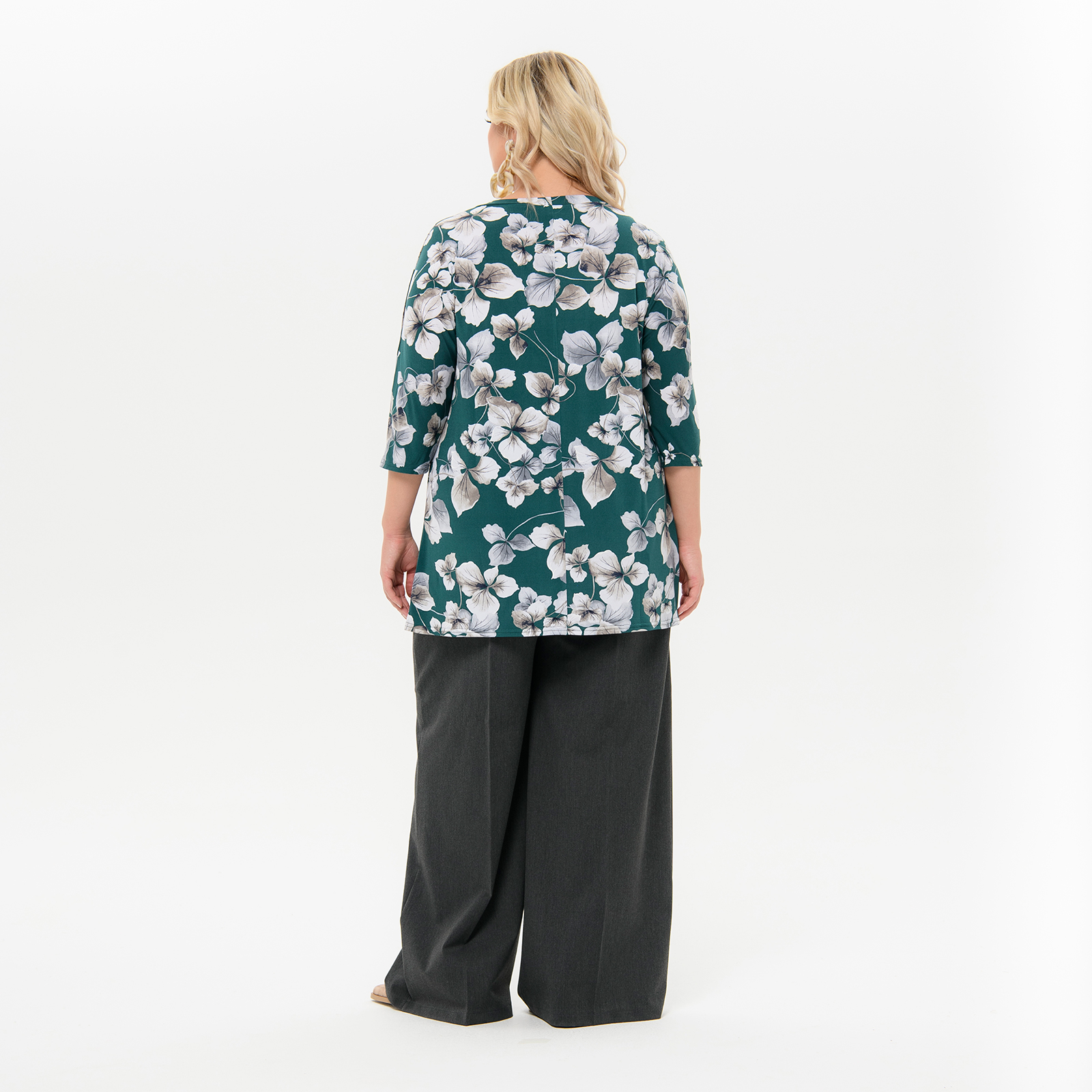Туника с цельнокроеным рукавом изумрудная с цветочным принтом *