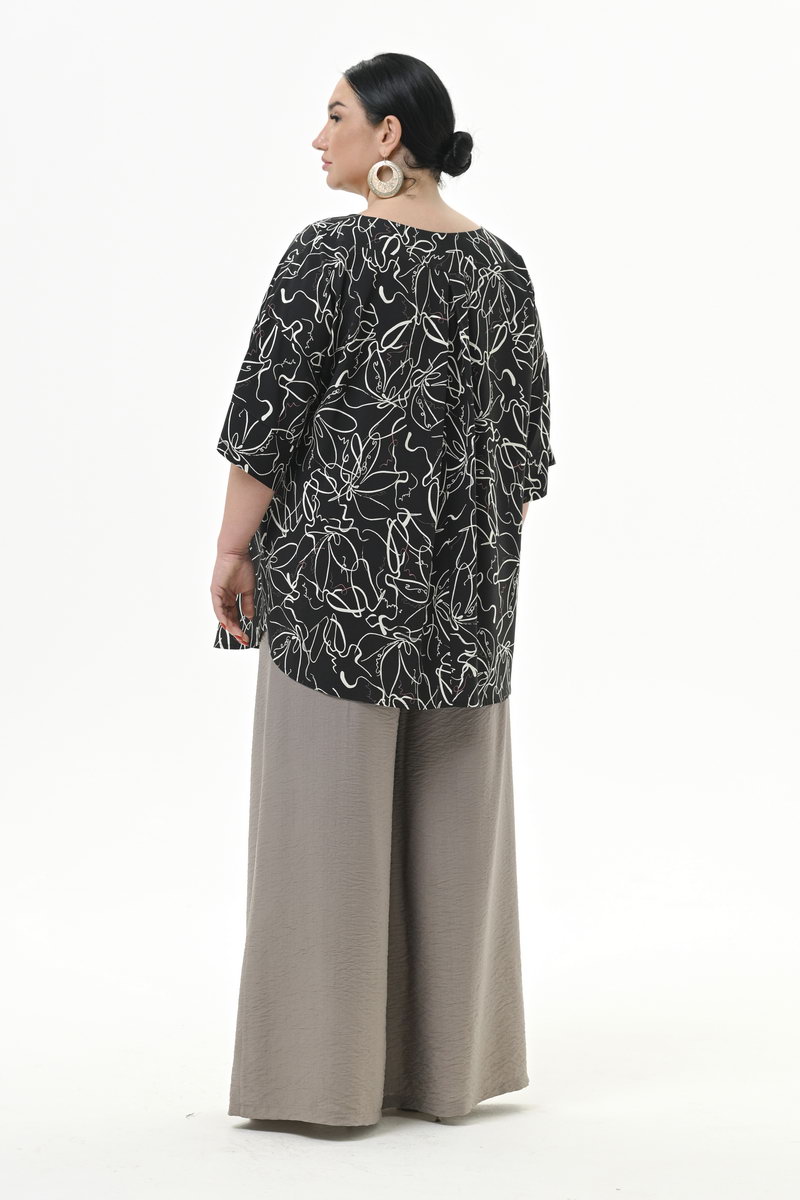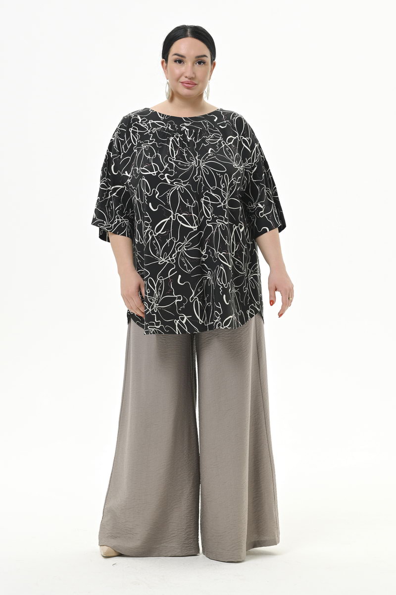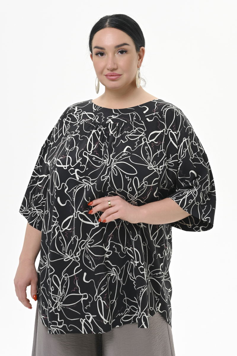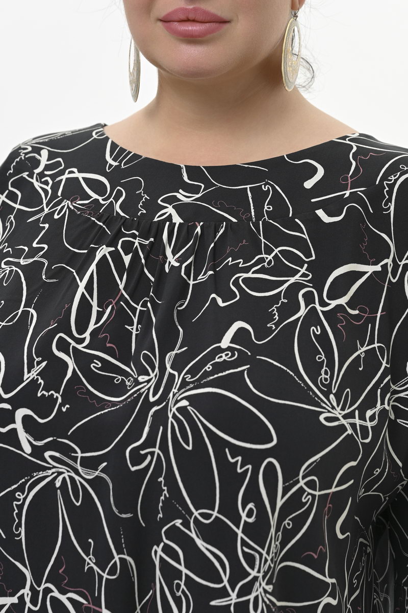 Туника с округлой обтачкой горловины, вискоза черная, принт "футуризм" *