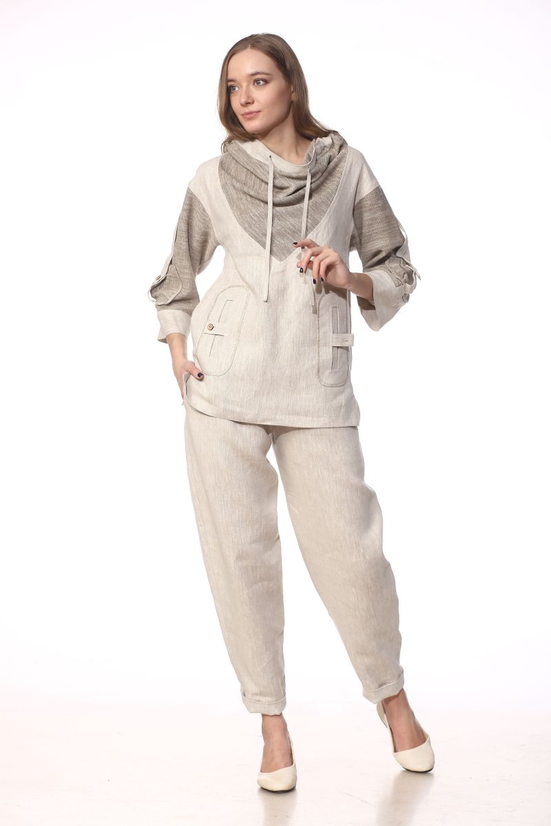 Описание: Туника с капюшоном, карманы, ткань лен с трикотажем.