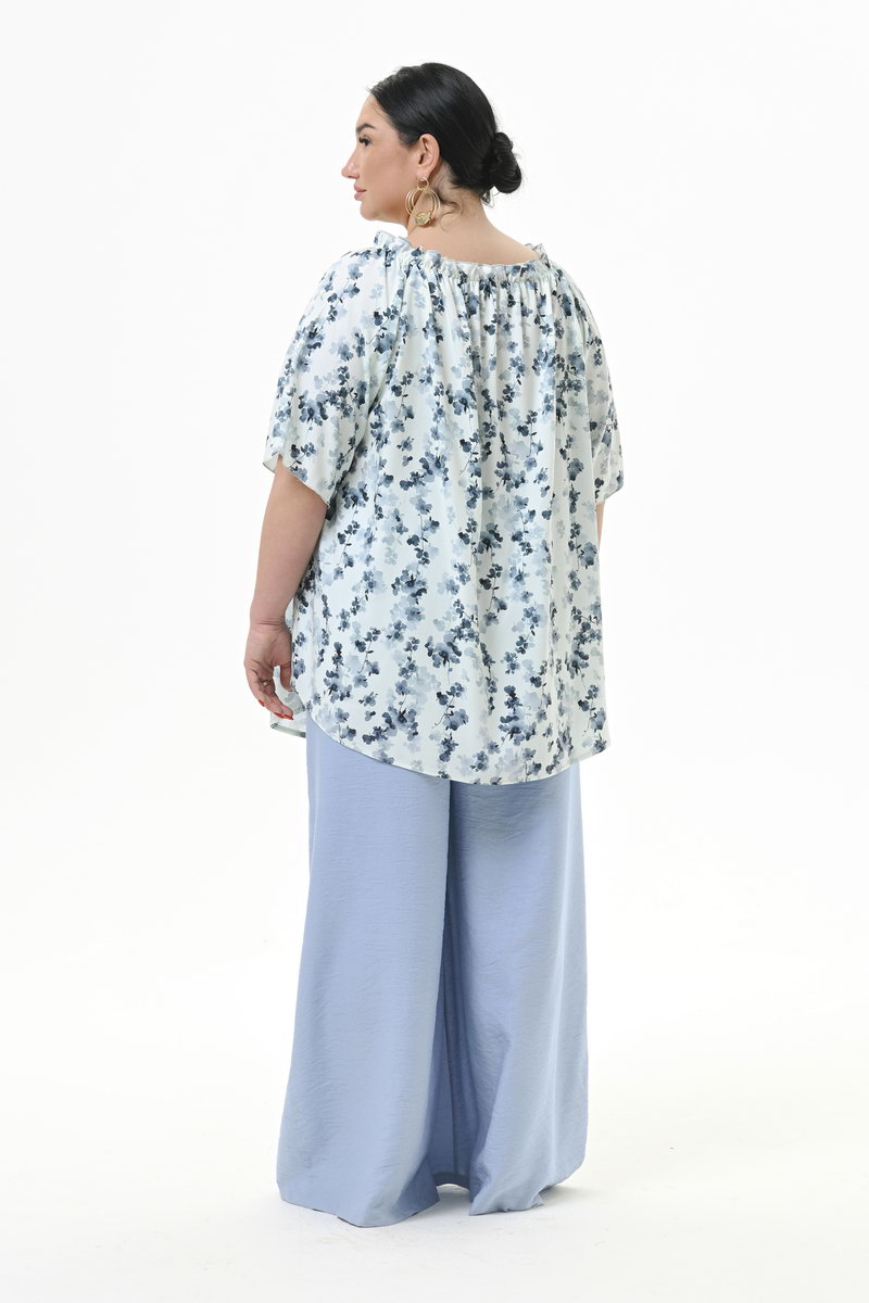 Туника со сборочкой по горловине, штапель "цветочная дымка" *