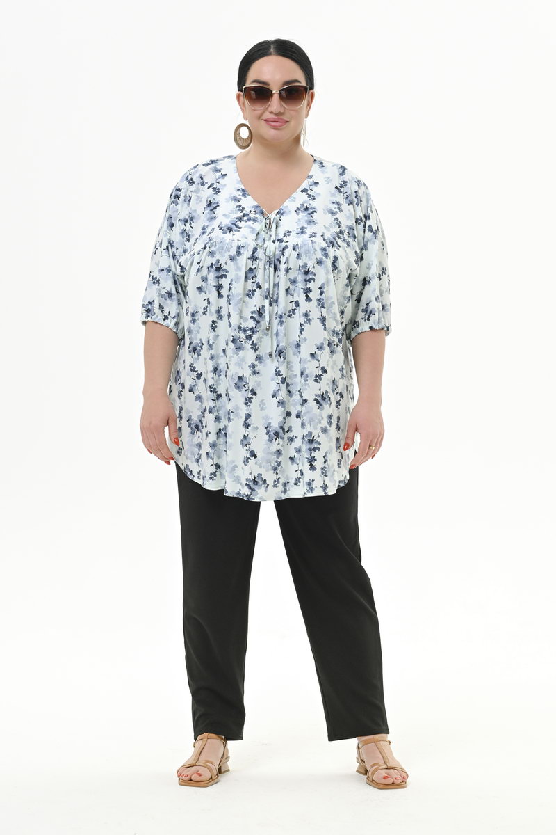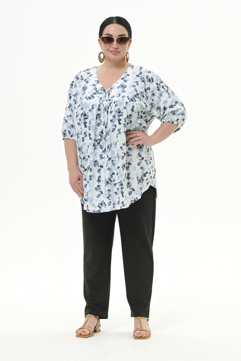 Туника свободная из вискозы, принт "цветочная дымка" *