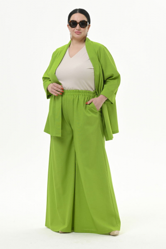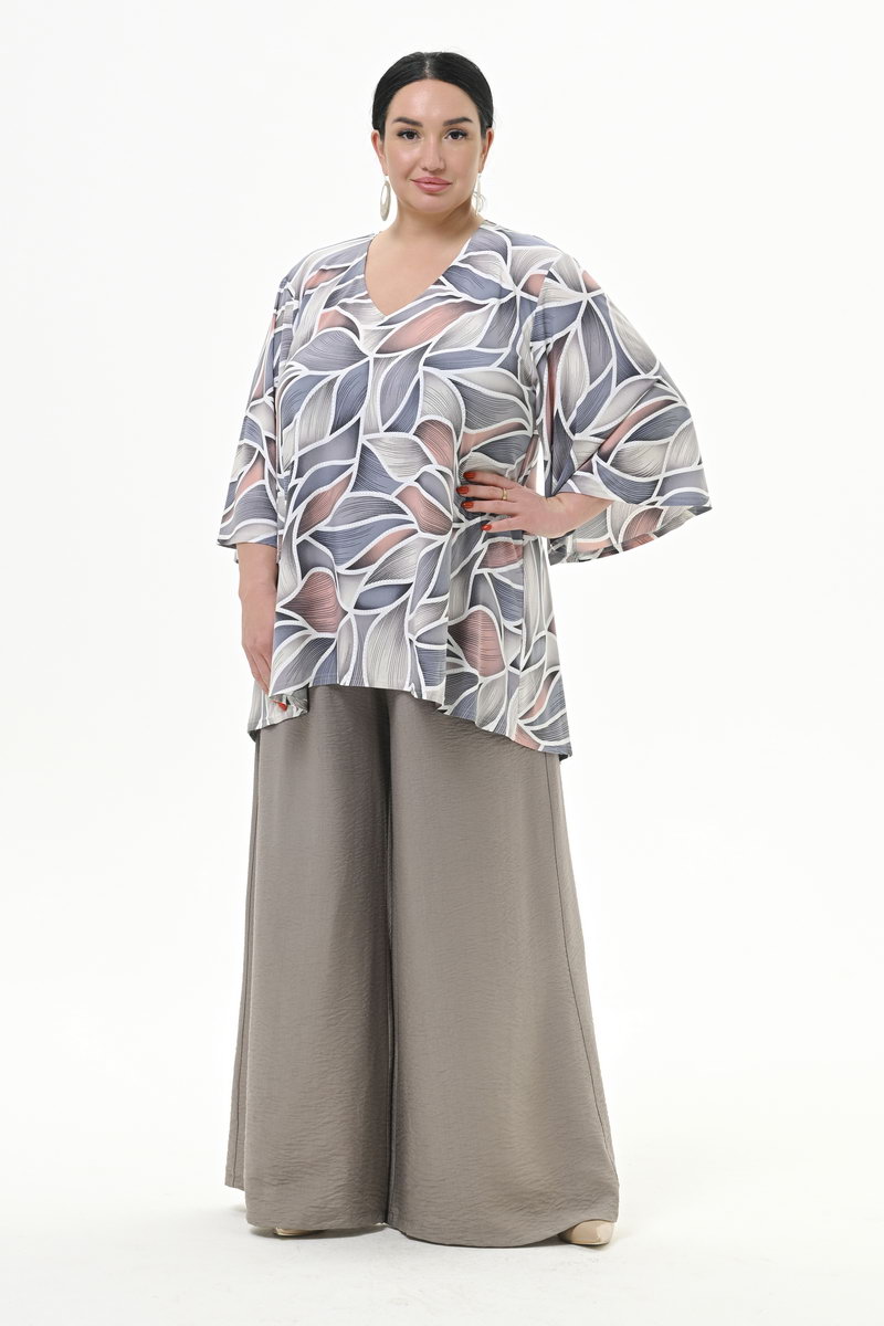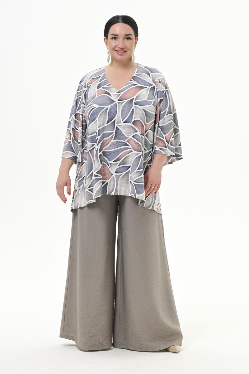 Идеально сочетается с зауженными и широкими брюками, джинсами.