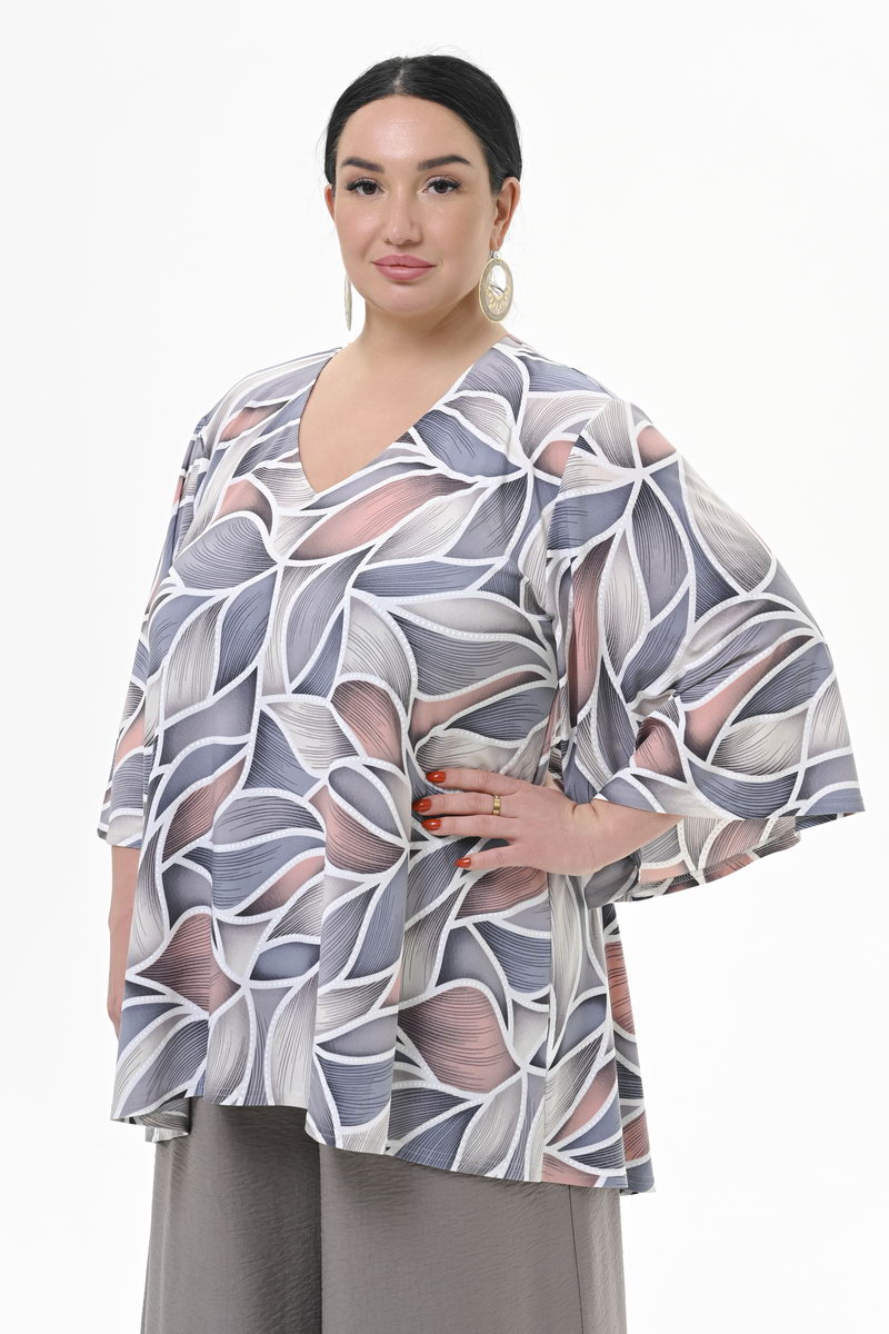 Туника свободная с асимметричным низом, принт "серо-коралловый" *