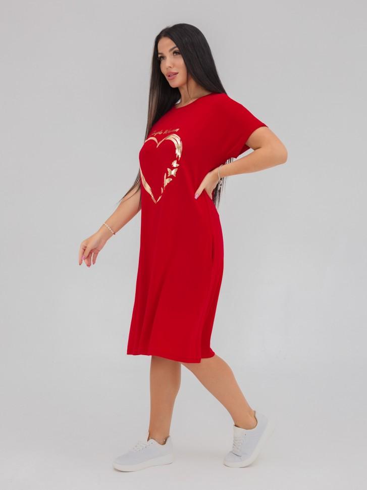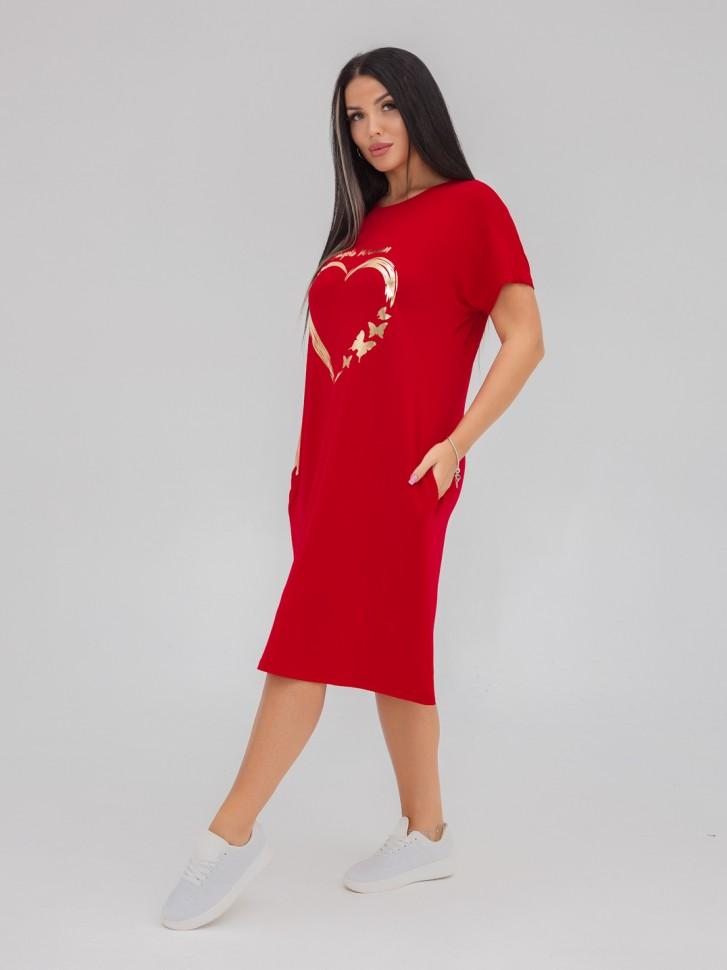 Туника женская свободного кроя с карманами в боковых швах. На полочке печать "Сердце" выполнена методом шелкографии с добавлением золотых частиц. Состав: вискоза однотонная  (100% хлопок). Размеры:46,48,50,52,54,56,58,60,62,64