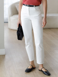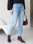 Удлиненные прямые джинсы выполнены из эластичного денима. Безупречно садятся по фигуре и не сковывают движений. Ткань хорошо держит форму, не вытягиваясь со временем. Модель с высокой посадкой зрительно вытягивает ноги и подчеркивает силуэт. Отлично сочетается со свободными верхами, футболкой, блузой, с топом, жакетом и кардиганом. Подходит для любой фигуры.