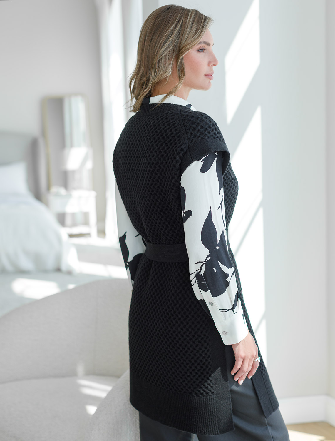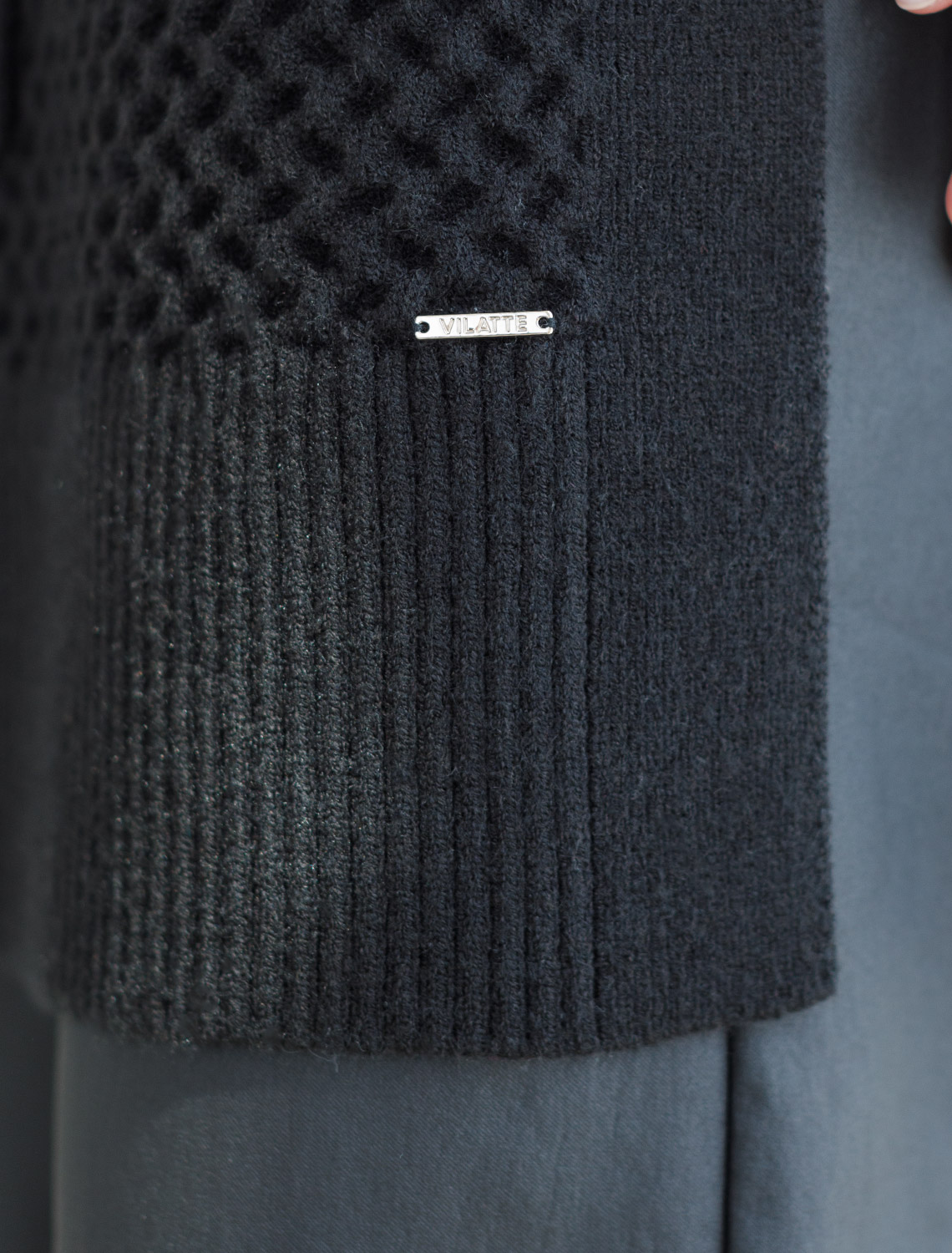 Удлиненный жилет выполнен из мягкой пряжи с кашемиром. Модель фактурной вязки дополнена высокими боковыми разрезами и поясом в тон изделия. Хорошо сочетается водолазками, лонгсливами и блузками. Мягкая пряжа очень приятная к телу, поддержит комфорт на протяжении всего дня, при этом не перегревая. Сочетается в костюме с брюками D38.013, D38.012 и юбкой D36.016 черный